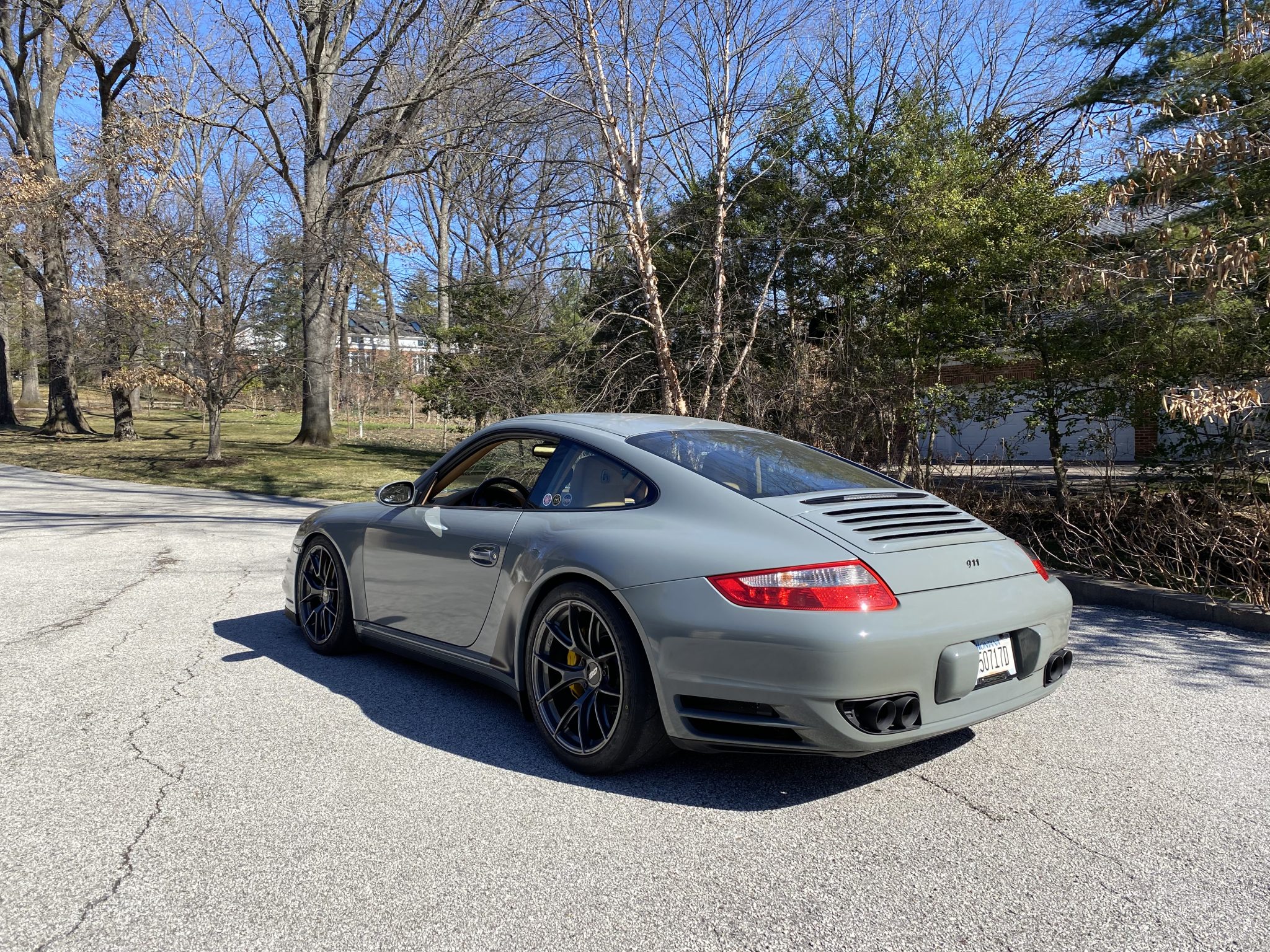 Apex Forged VS-5 RS 19″ wheels are mounted with Nankang Sportnex AR-1 tires that measure 245/35 up front and 325/30 out back. The suspension features 997 GT3 RS coilovers, Tractive mono-ball shock mounts, camber plates, updated sway bars, and a Tarett adjustable front sway bar and front and rear drop links. Braking is reportedly provided by yellow-finished Brembo GT six-piston front and four-piston rear calipers with Hawk DTC-70 front and Hawk DTC-60 rear pads over 380mm cross-drilled rotors. The stainless-steel brake lines, rear toe links, power steering return line, front and rear control arms, and front and rear wheel hubs were replaced and a brake fluid flush was performed under current ownership.
