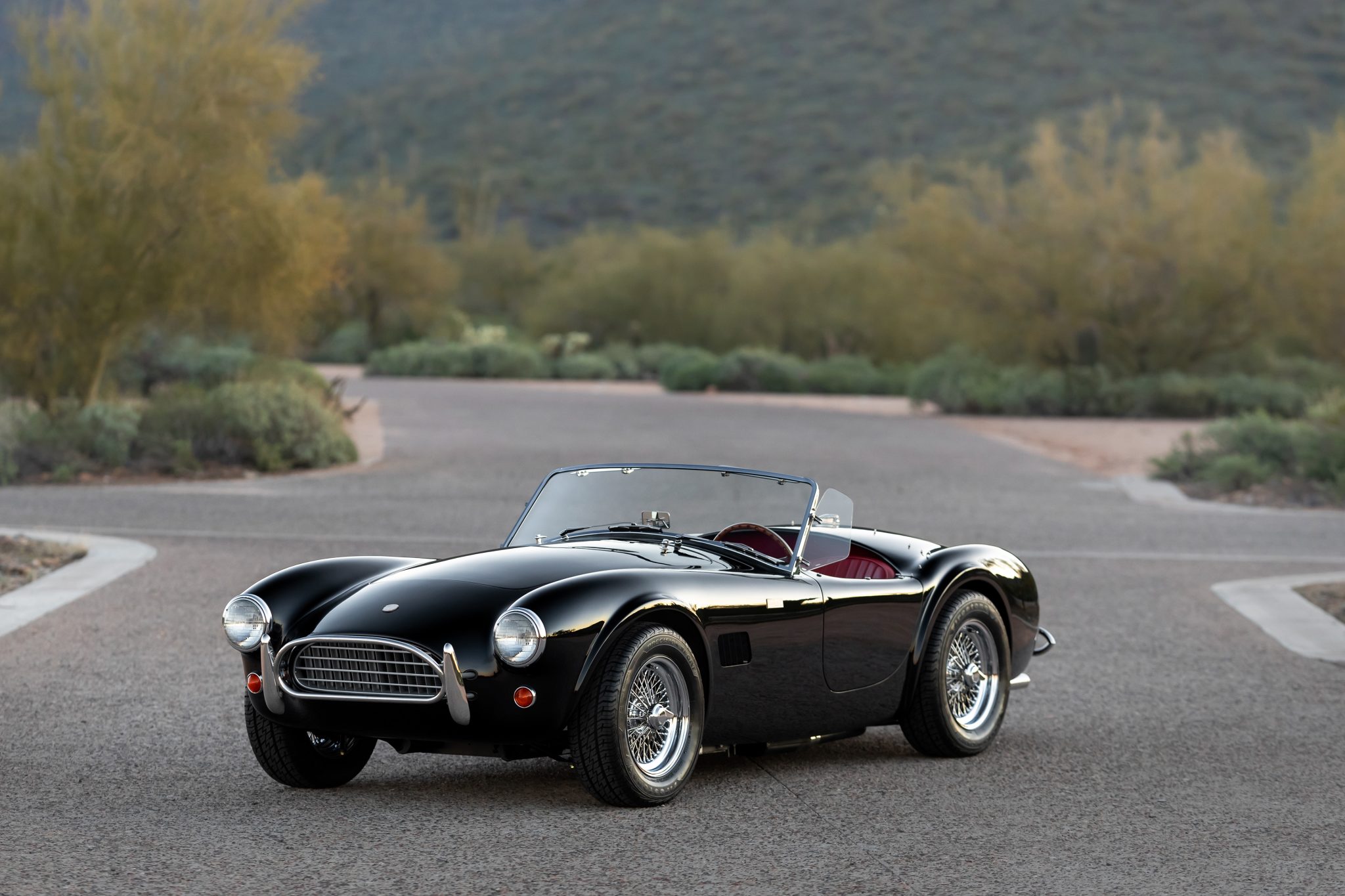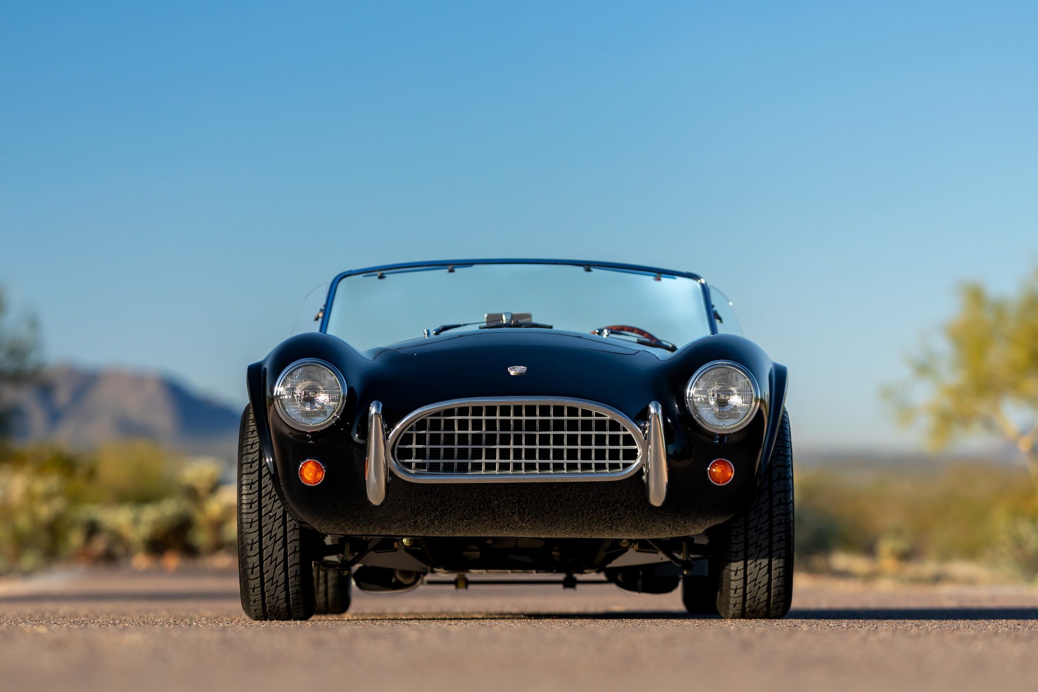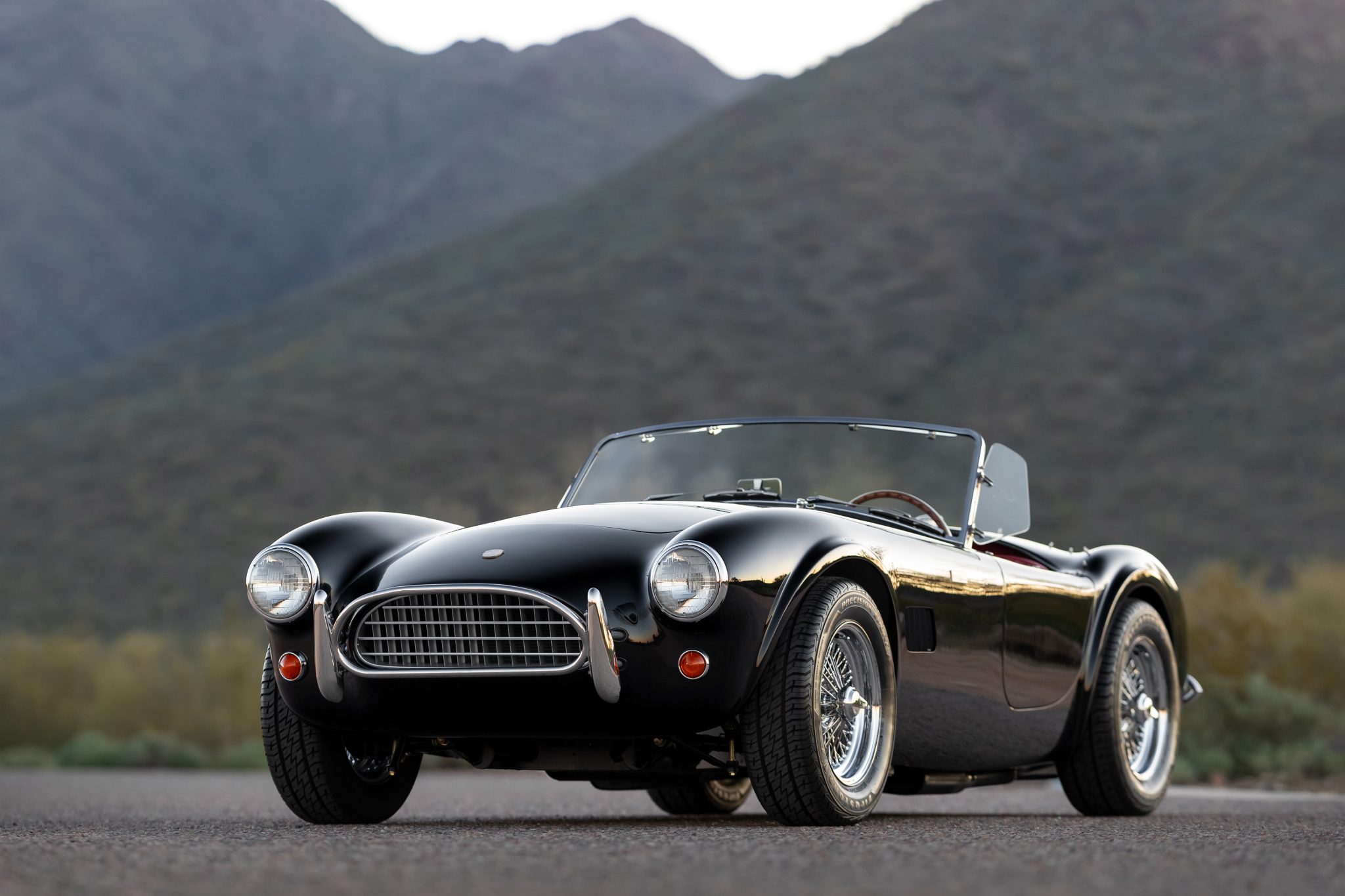 Chrome 15” wire wheels wear two-eared knock-off spinners and are mounted with 205/65 Firestone Precision Sport tires. Stopping power is provided by Wilwood four-wheel discs with Shelby-branded calipers.