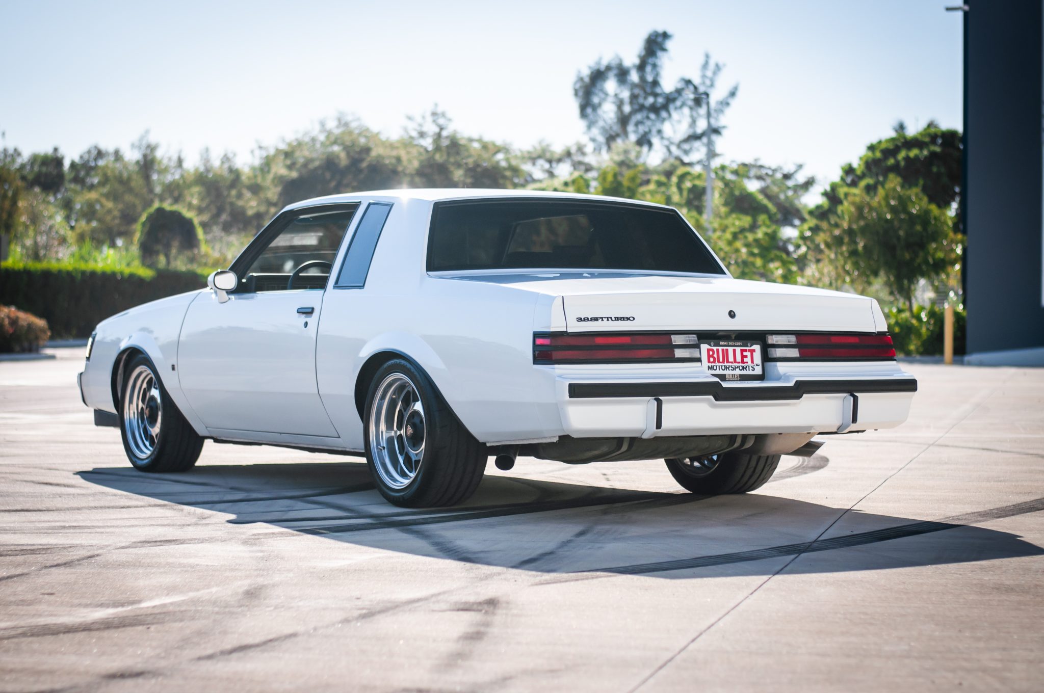 Budnik forged 17″ GN replica wheels are mounted with Firestone Firehawk tires measuring 245/45 up front and 275/40 out back. The car is fitted with Detroit Speed coil springs, Bilstein shock absorbers, sway bars, and power steering. Braking is handled by power-assisted Street Warrior front discs and factory-style rear drums.