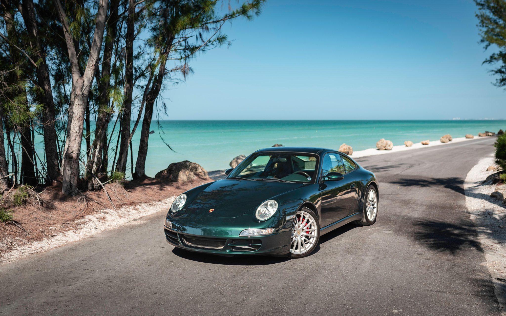 The 19″ Sport Design wheels are wrapped in 235/35 front and 295/30 rear Pirelli P Zero tires. Braking is handled by red Porsche-branded multi-piston brake calipers fitted over cross-drilled and vented rotors at all four corners. The car is equipped with Porsche Stability Management (PSM), an active brake differential (ABD), and Anti-Slip Regulation (ASR).