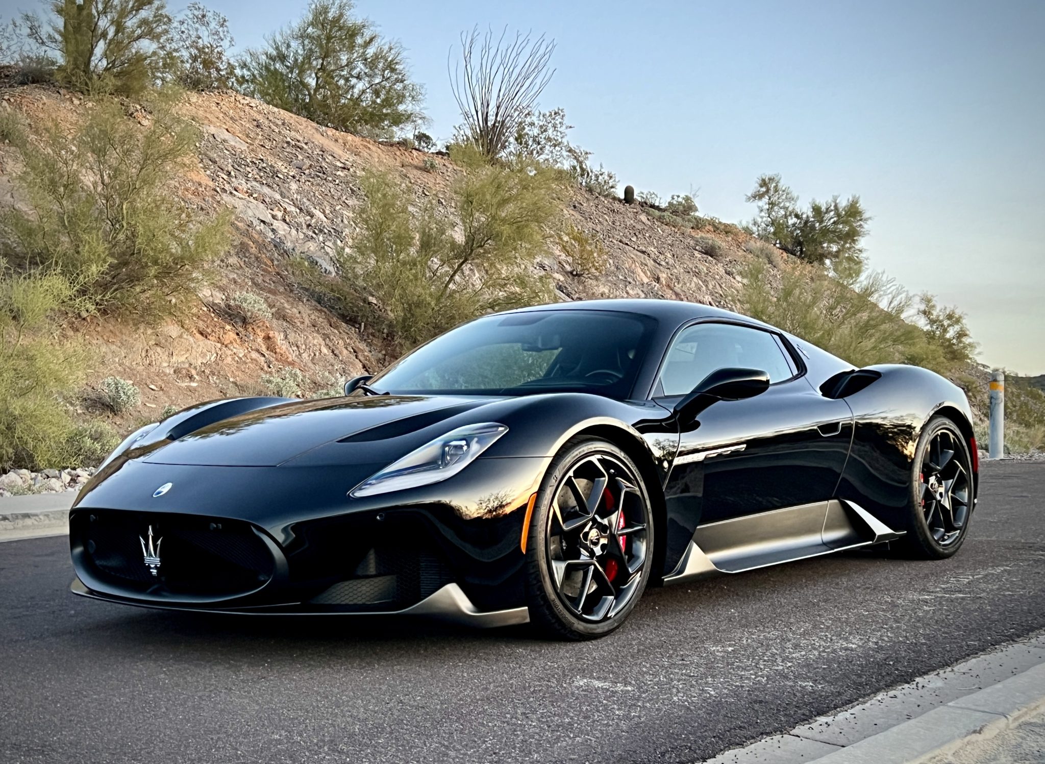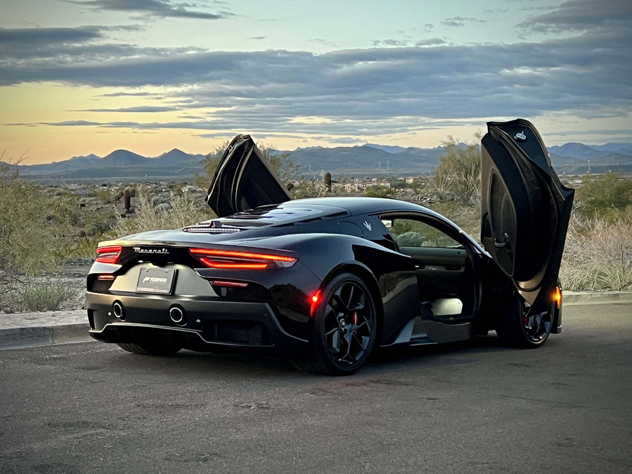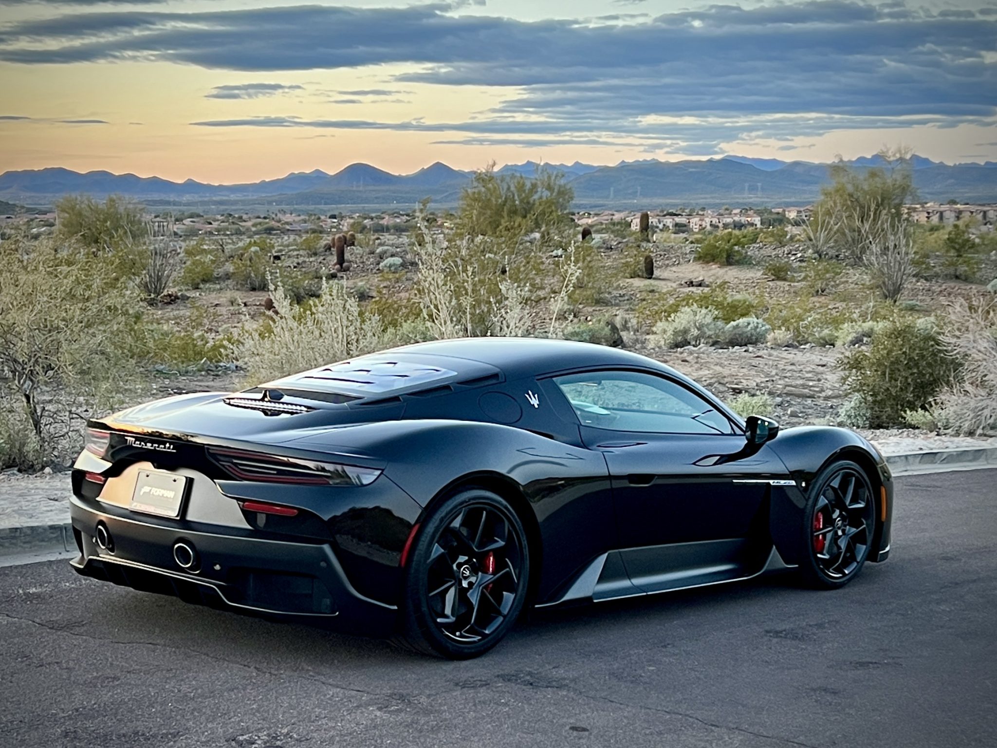 Black-finished 20″ Birdcage wheels are mounted with 245/35 front and 305/30 rear Bridgestone Potenza Sport tires. Stopping power is provided by optional four-wheel carbon-ceramic disc brakes with red calipers. The car is equipped with a double wishbone sport suspension with active dampers as well as an optional front suspension lift system.
