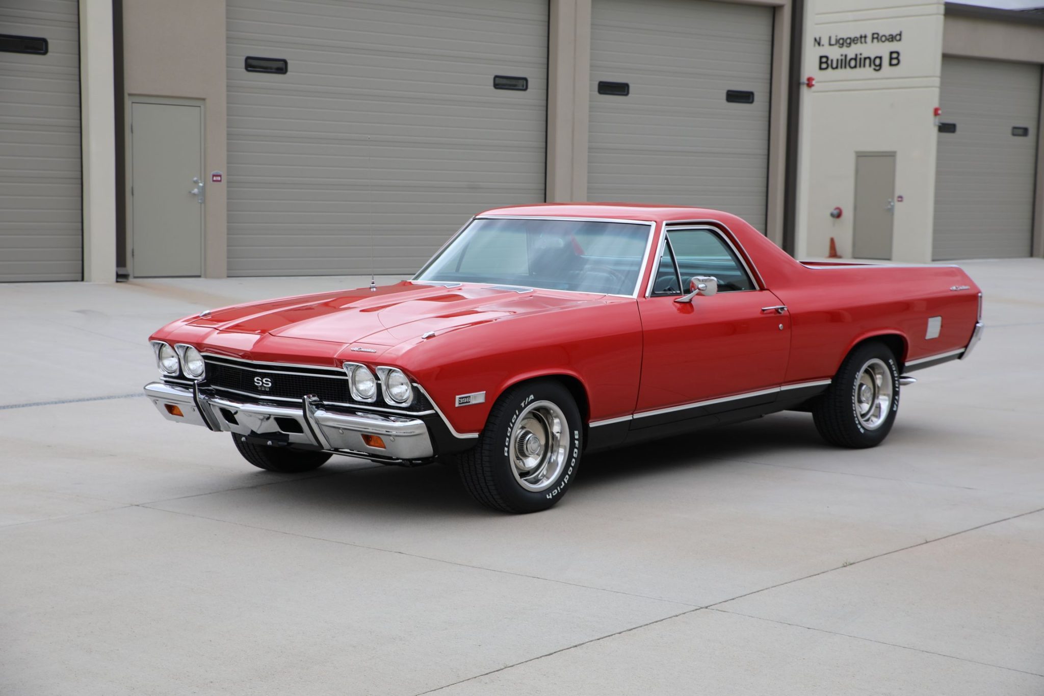 Silver 15″ rally wheels feature chrome trim rings and hubcaps and are mounted with 235/60 BFGoodrich Radial T/A tires that are said to have been installed in preparation for the sale. The car is equipped with power steering, and braking is provided by power-assisted front disc and rear drum brakes. The seller states the suspension setup was overhauled and replacement springs were installed during the refurbishment.
