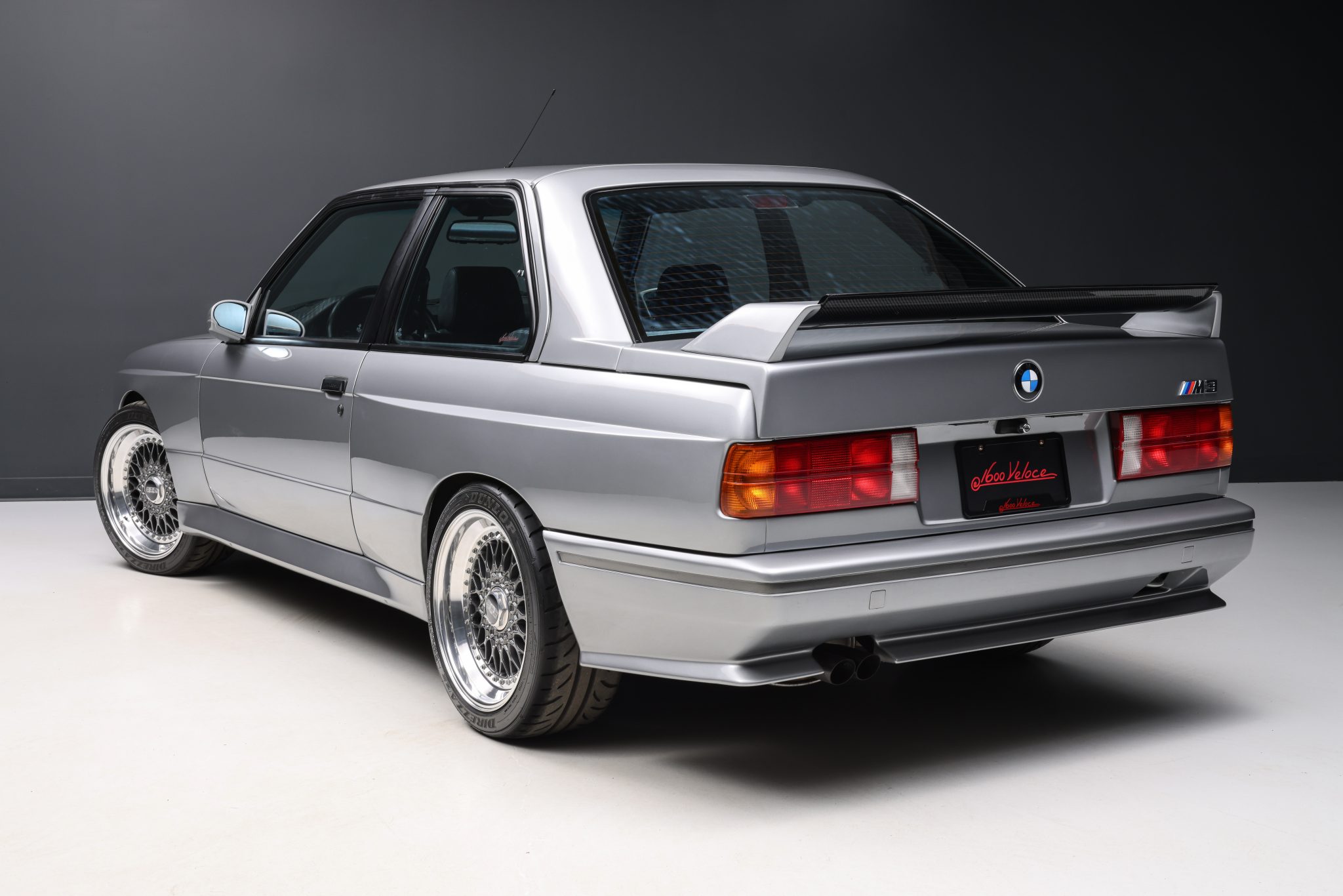 Multi-piece 17″ BBS wheels with gray-painted centers and polished lips wear 235/40 Dunlop Direzza DIII tires. Suspension modifications are said to include Ground Control coilovers, adjustable Koni shocks, a Ground Control camber kit, and polyurethane offset control arm bushings.