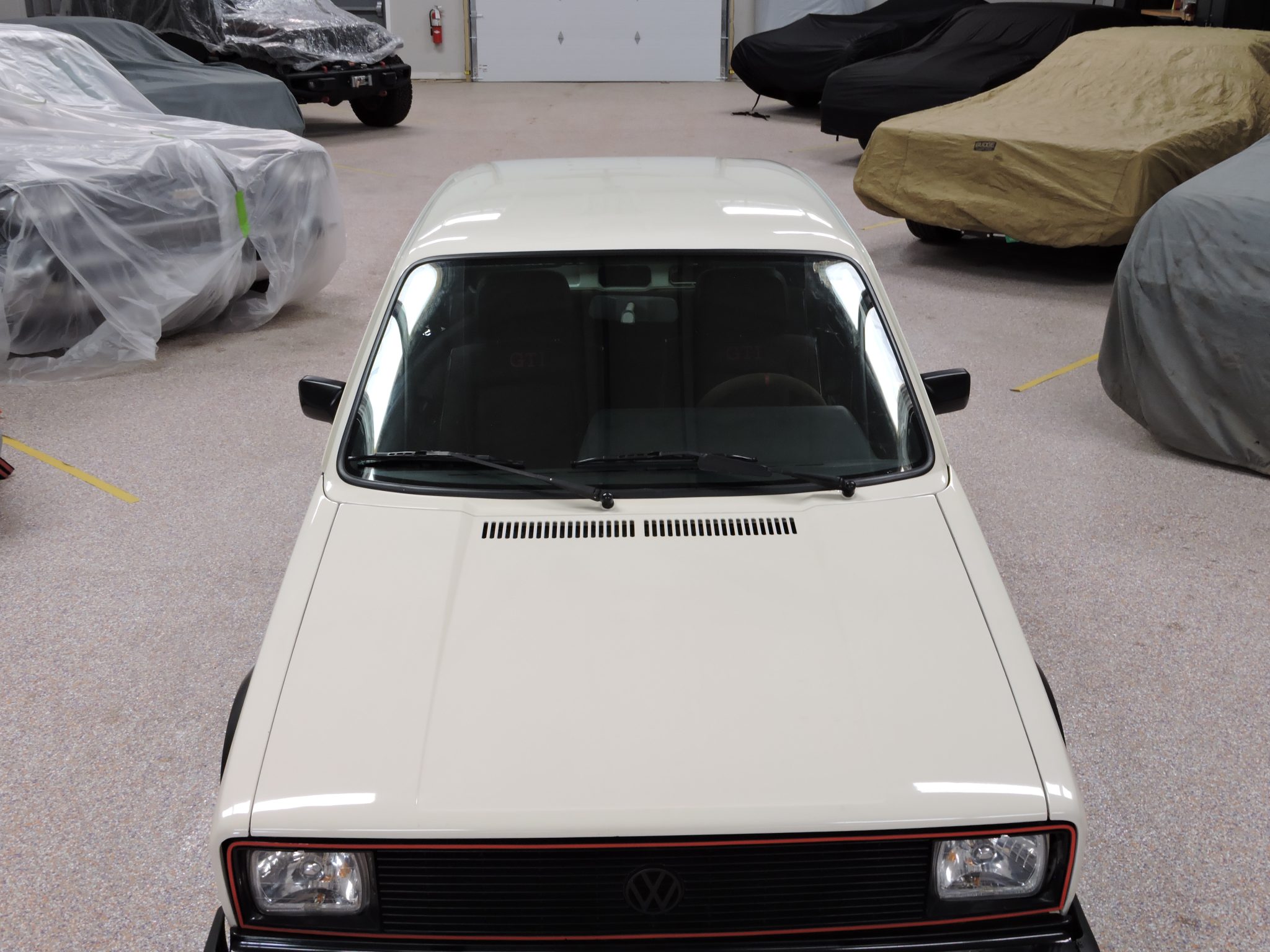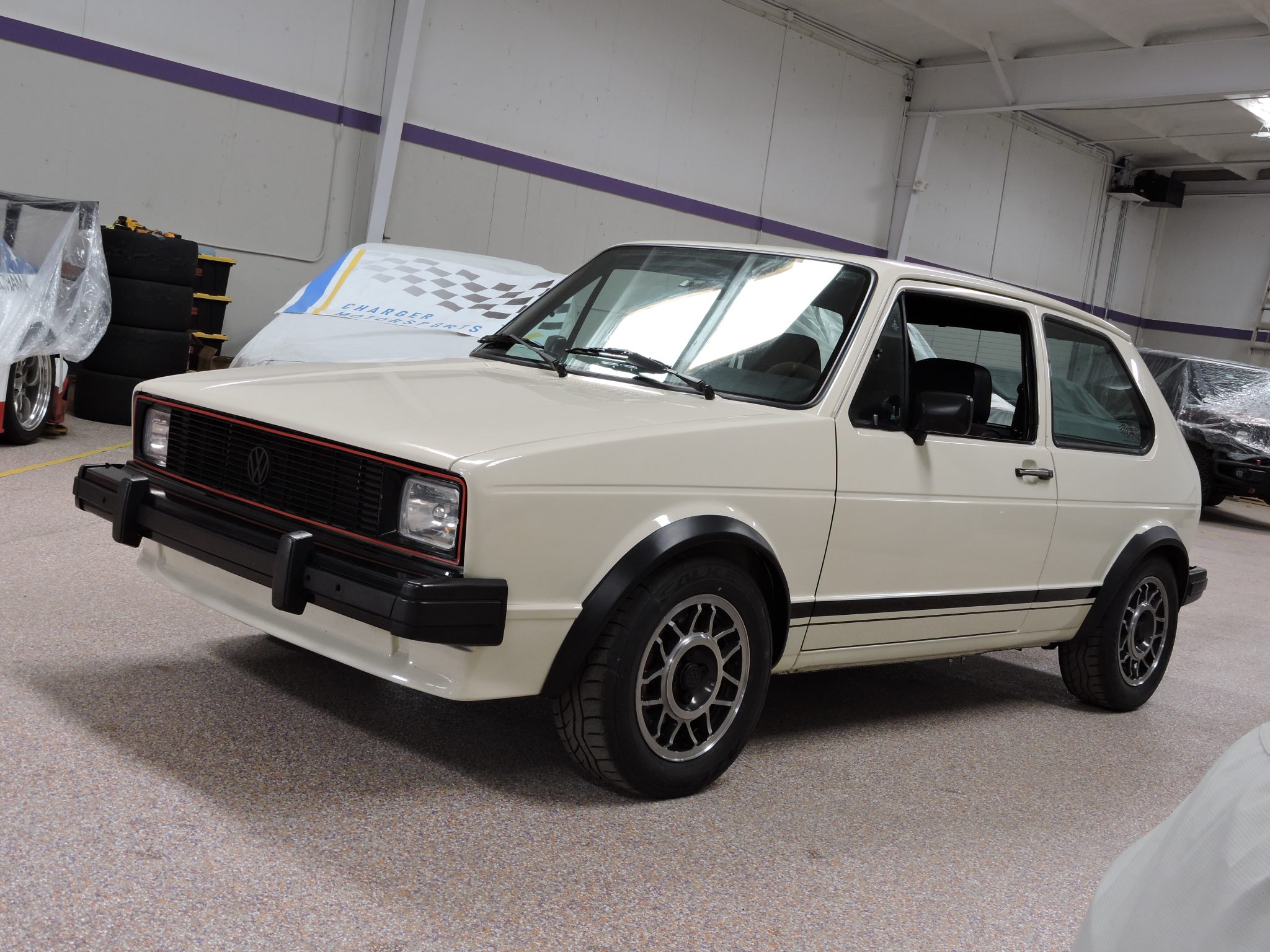 Silver-finished 14″ Snowflake alloy wheels with black-painted pockets are wrapped in older 195/60 Falken Azenis NT616R tires. The front disc brakes were reportedly sourced from a Scirocco 16V, and the seller states that they have been fitted with Hawk HP pads. Per the seller, the car is equipped with a four-point subframe brace, a stiffer rear anti-roll bar, and coilovers utilizing Bilstein gas struts and shocks in addition to 650-lb. front and 450-lb. rear springs. A power-steering rack reportedly sourced from a Mk 1 Cabriolet was installed in 2021, and the seller notes a power steering fluid leak.