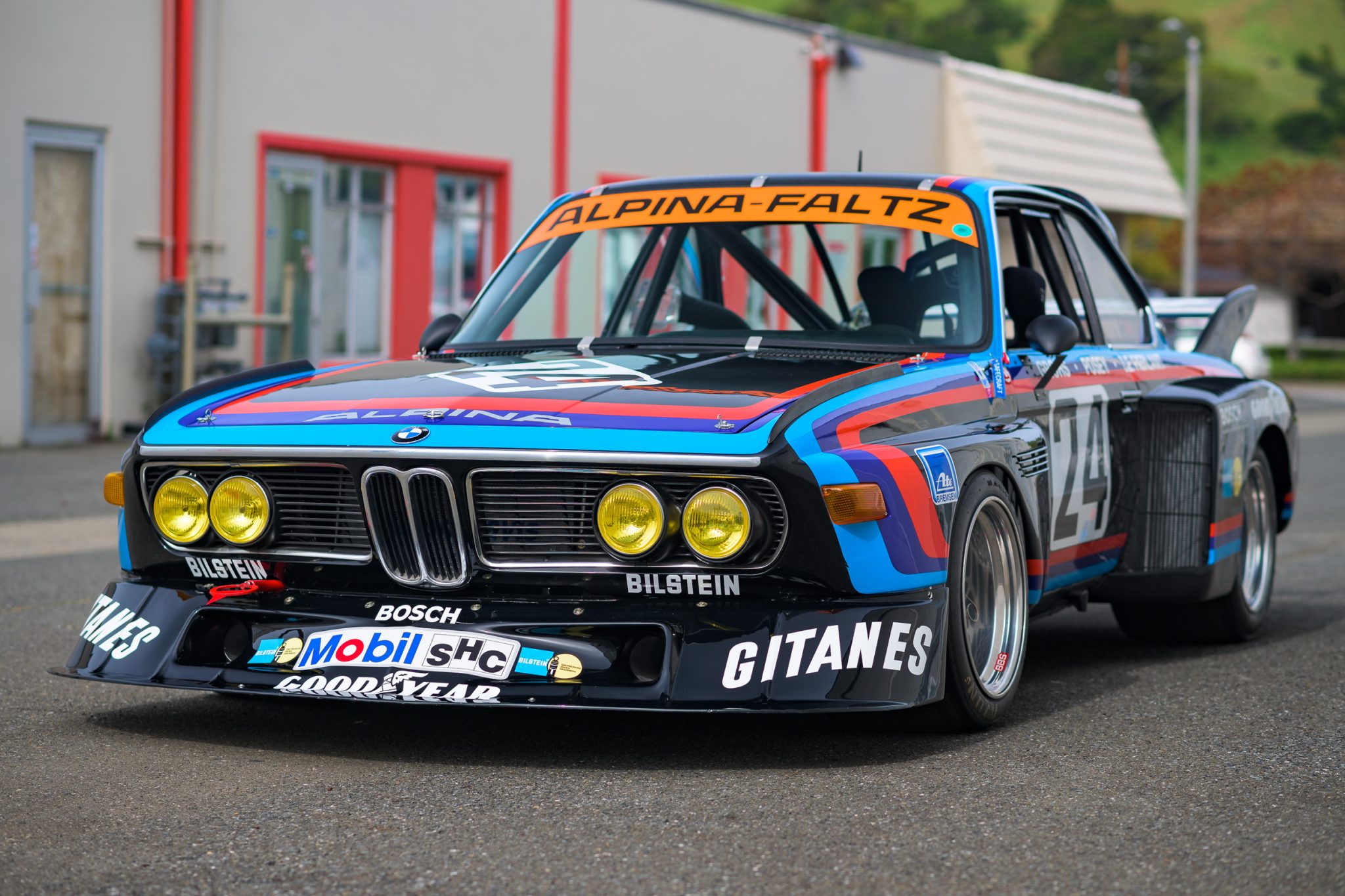 Silver 16″ three-piece BBS wheels feature center-lock hubs and polished lips, and they are mounted with Avon racing slicks. The suspension is said to utilize period BMW Motorsport components with adjustable dampers. Stopping power is provided by ATE front calipers and AP Racing rear units over cryo-treated floating rotors at all four corners.