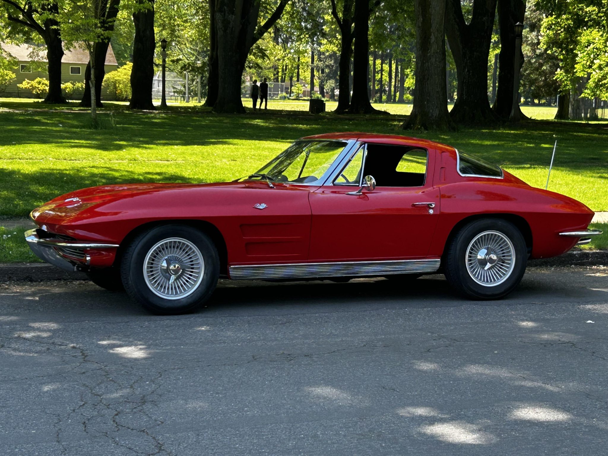 The 15″ turbine-style wheels wear three-eared knock-off spinners and are mounted with 205/75 Cooper Trendsetter SE tires that were installed in preparation for the sale. The C2 was the first Corvette to offer fully independent suspension, which is said to have been rebuilt following the selling dealer’s acquisition. Braking is handled by four-wheel drums.