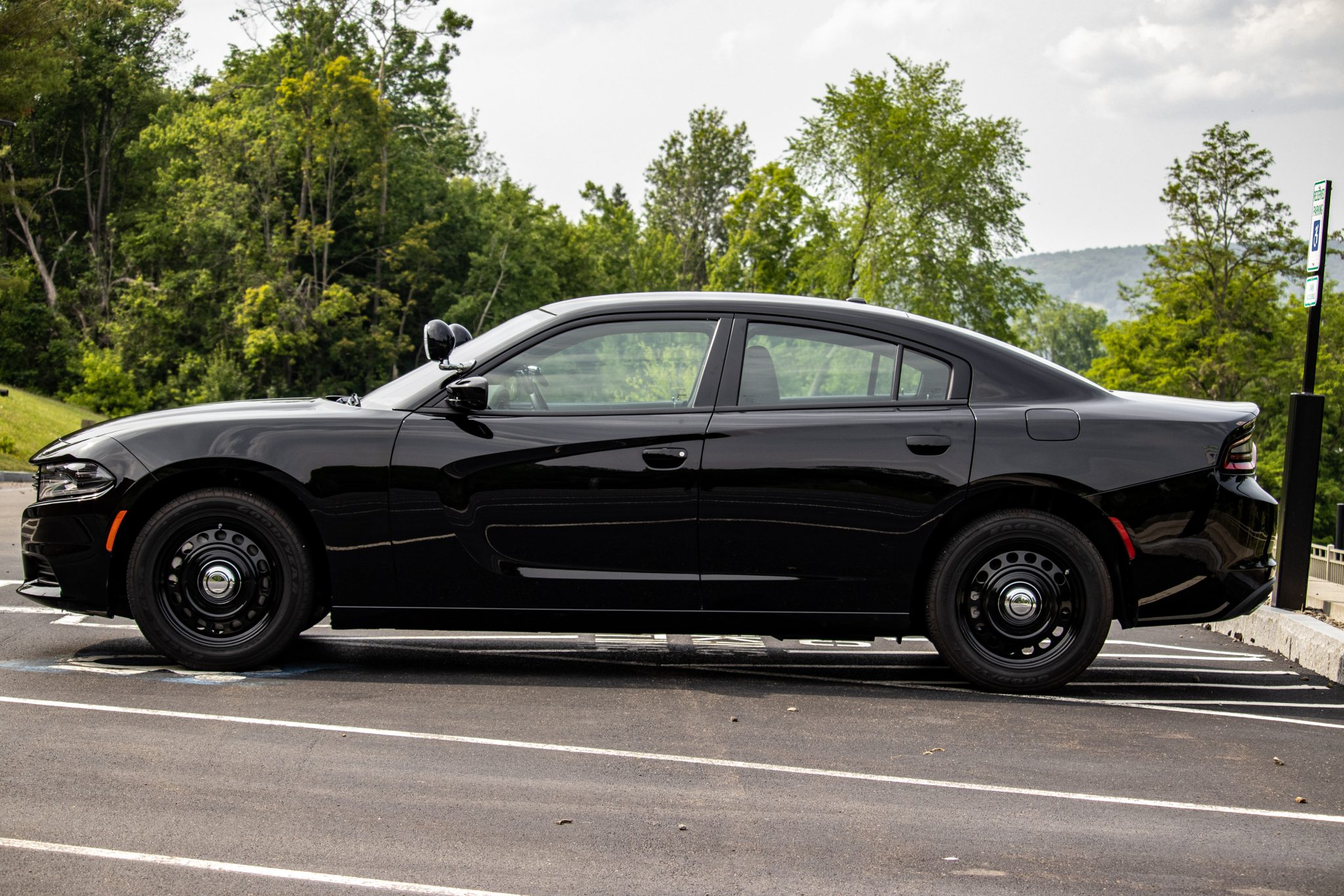 Black-finished 18″ steel wheels are wrapped in 245/55 Goodyear Eagle RS-A tires that show 2021 date codes. The car features heavy-duty suspension, all-speed traction control, and electronic stability control, and police package-spec heavy-duty four-wheel anti-lock disc brakes with brake assist provide stopping power.