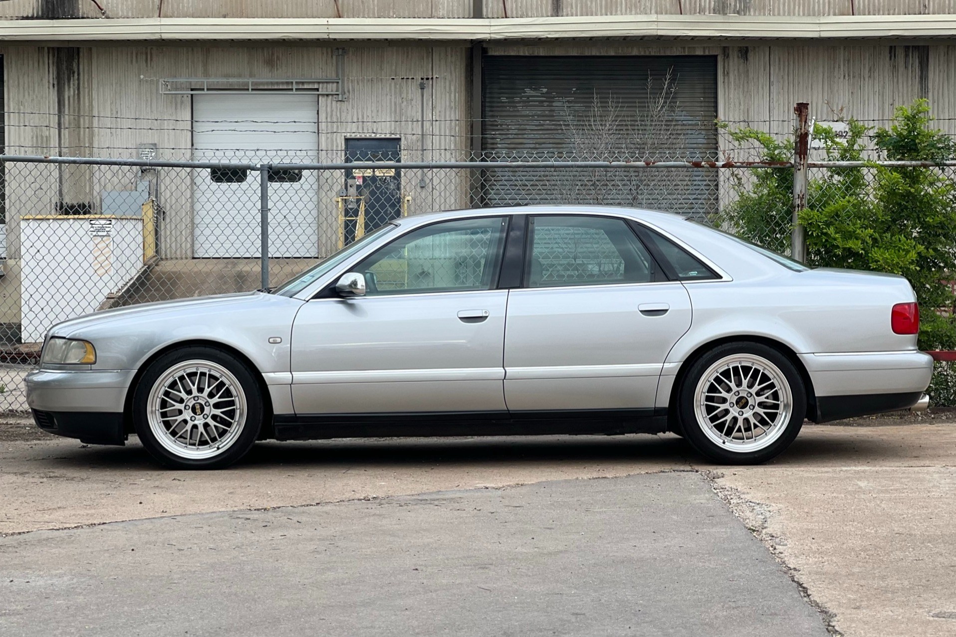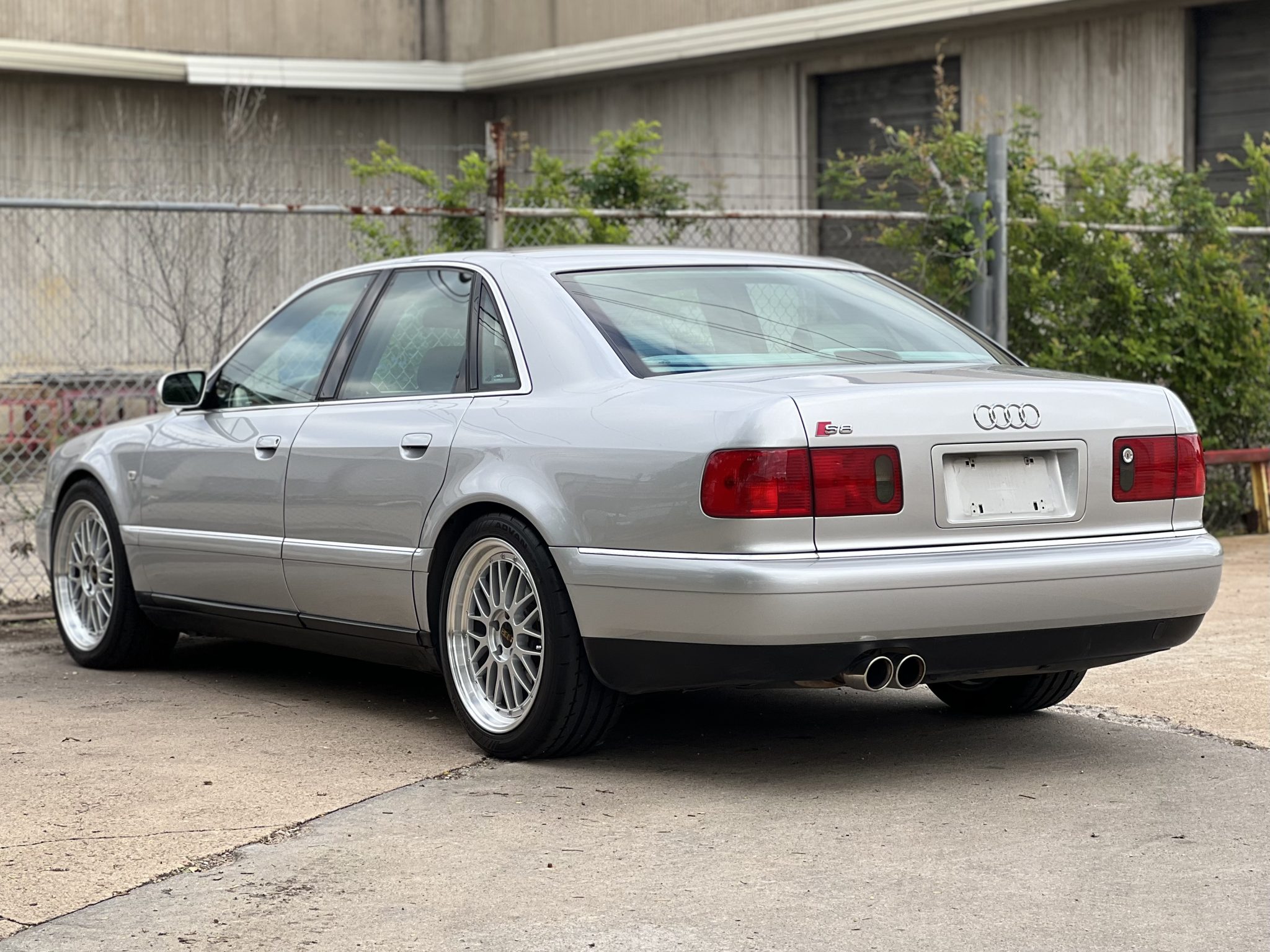 19″ BBS LM wheels are mounted with 255/45 Yokohama Advan Apex V601 tires showing 2019 date codes. KW coilovers have been added, and the left-front lower control arms were replaced in 2019. Service in 2022 included replacing the front sway bar end links, power steering fluid reservoir, power steering lines, ABS control unit, brake pressure switch, brake hoses, and rear brake pads.
