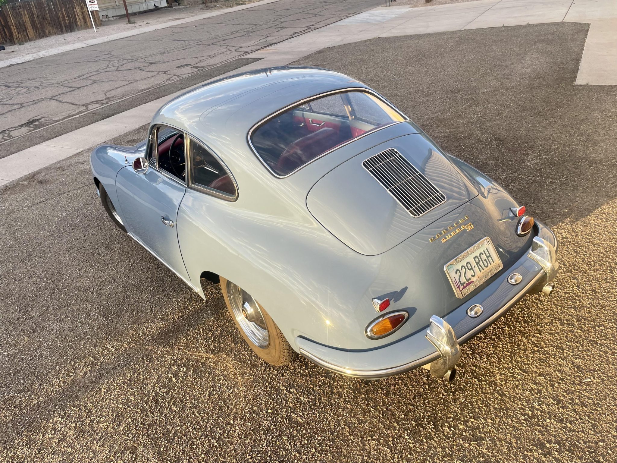 Slotted 15″ wide-five wheels wear polished hubcaps with Porsche crests and are mounted with 165-series Michelin XZX tires. Braking is handled by finned drums on all four corners.