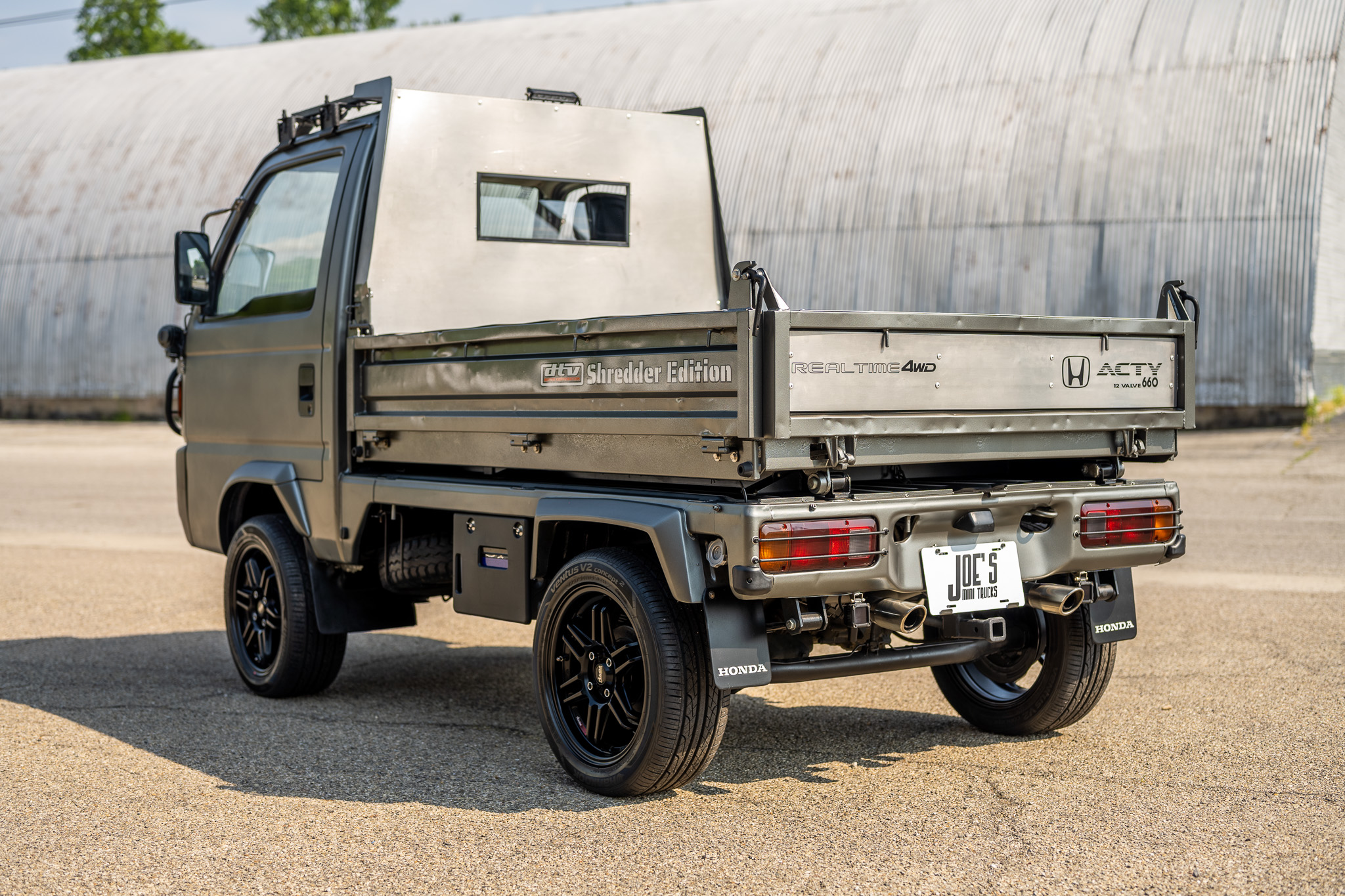 Advanti Racing 15″ black-finished wheels are mounted with 195/50 Hankook Ventus V2 Concept tires. The truck has been lifted 2″ and fitted with progressive springs. The front axles are said to have been replaced by the seller.