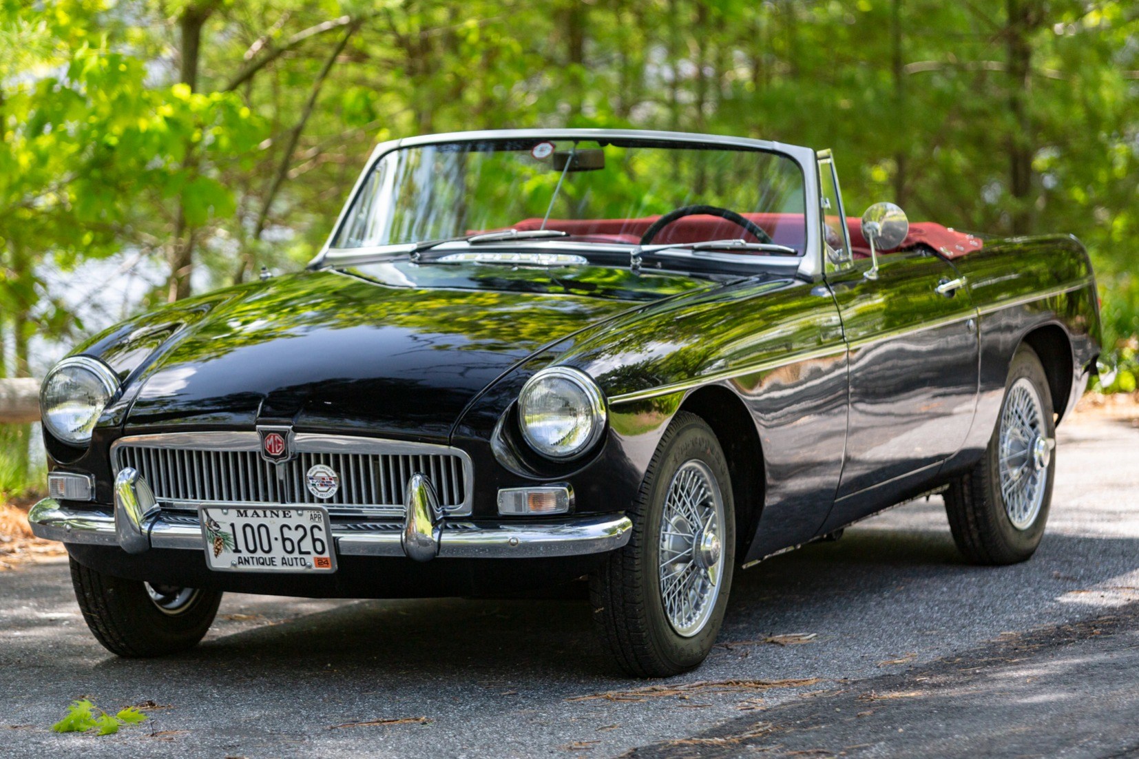 Silver-finished 14″ wire wheels are retained with two-eared knock-offs and were reportedly mounted with 155-series Firestone F-560 tires in preparation for the sale. A full-size spare is located in the trunk. Braking is handled by discs up front and drums out back.