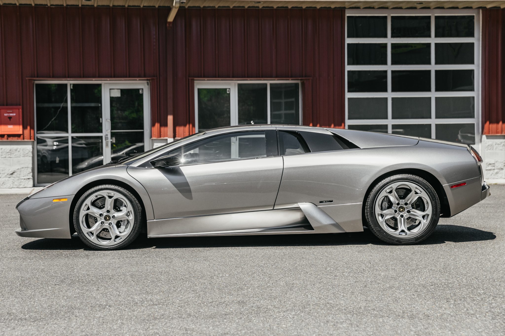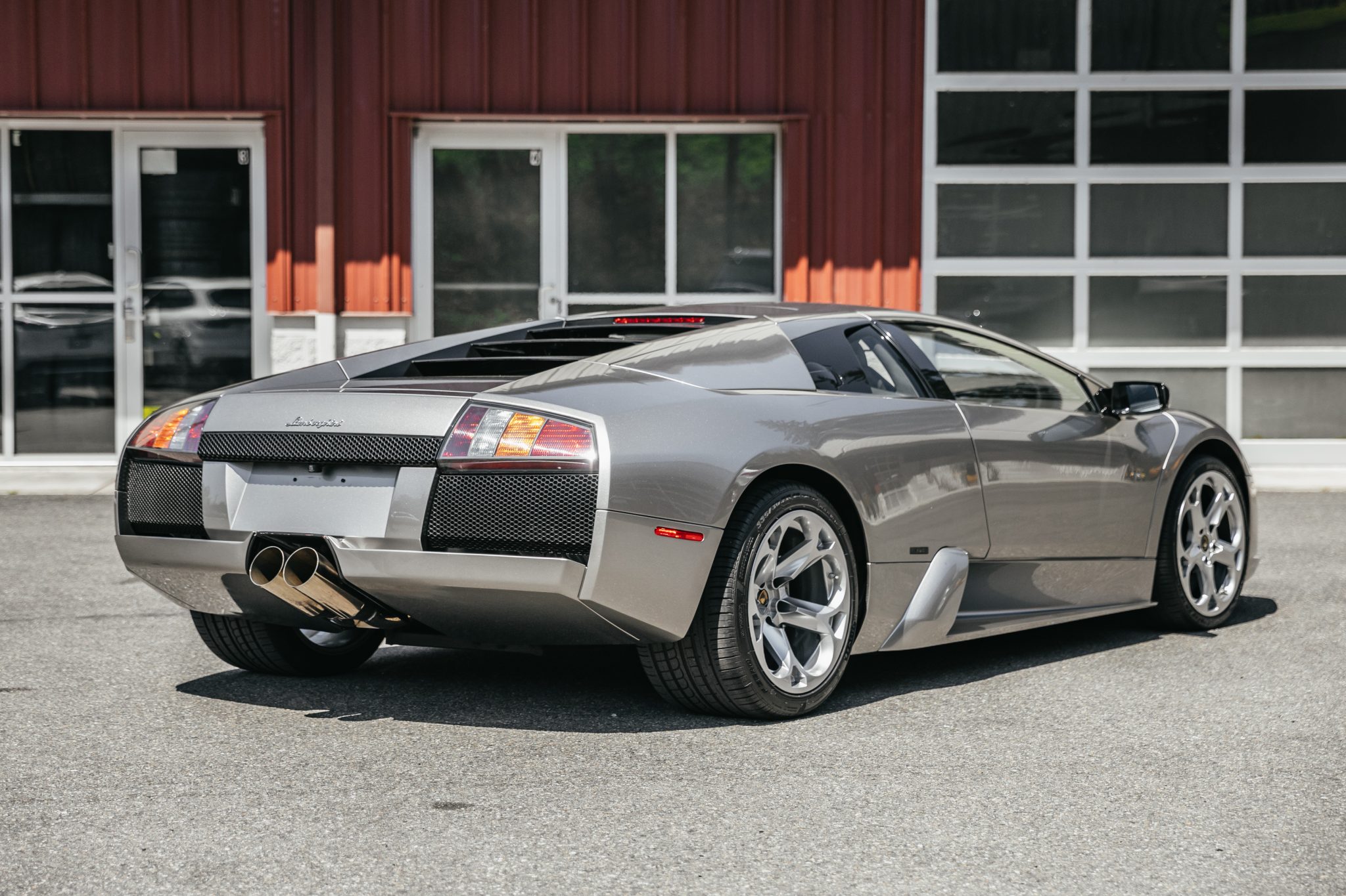 The 18″ Hercules alloy wheels feature center caps with CI badging and are mounted with 245/35 front and 335/30 rear Pirelli P Zeros tires showing 2019 date codes. One of the wheels was reportedly replaced under prior ownership. Stopping power is provided by silver-finished calipers with black Lamborghini script fitted over cross-drilled and ventilated rotors at each corner.
