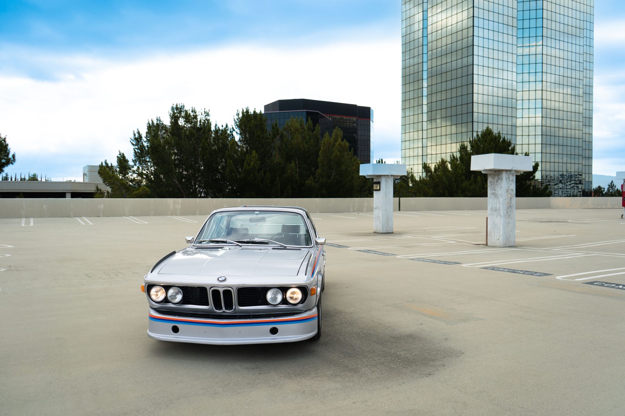 This example was stripped and placed on a rotisserie before it was repainted Polaris Silver during the refurbishment, at which time BMW Motorsport stripes were added. Additional equipment includes a black fiberglass rear bumper, dual side-view mirrors, chrome wheel well lips, and fender vents.