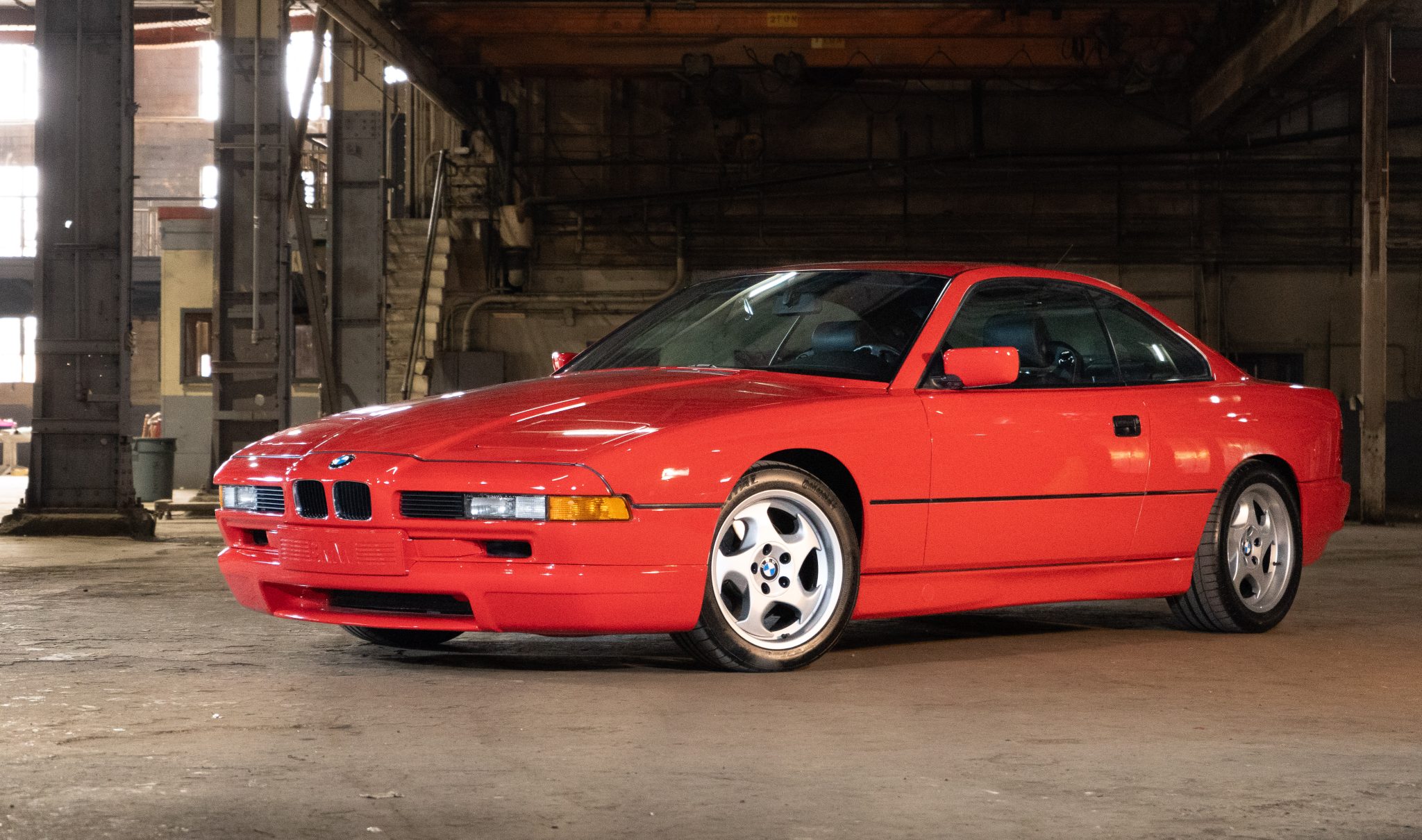 Forged-aluminum 17″ BMW Style 21 wheels wear directional “throwing star” covers and were refinished in December 2021, when Continental ExtremeContact Sport tires were mounted at all four corners. Other work at that time included replacing the lower front control arms, rear shock joints, and rear suspension joint components. The car is equipped with four-wheel disc brakes, and the 850CSi features a sport-tuned suspension and revised steering ratios in comparison to other E31 models.