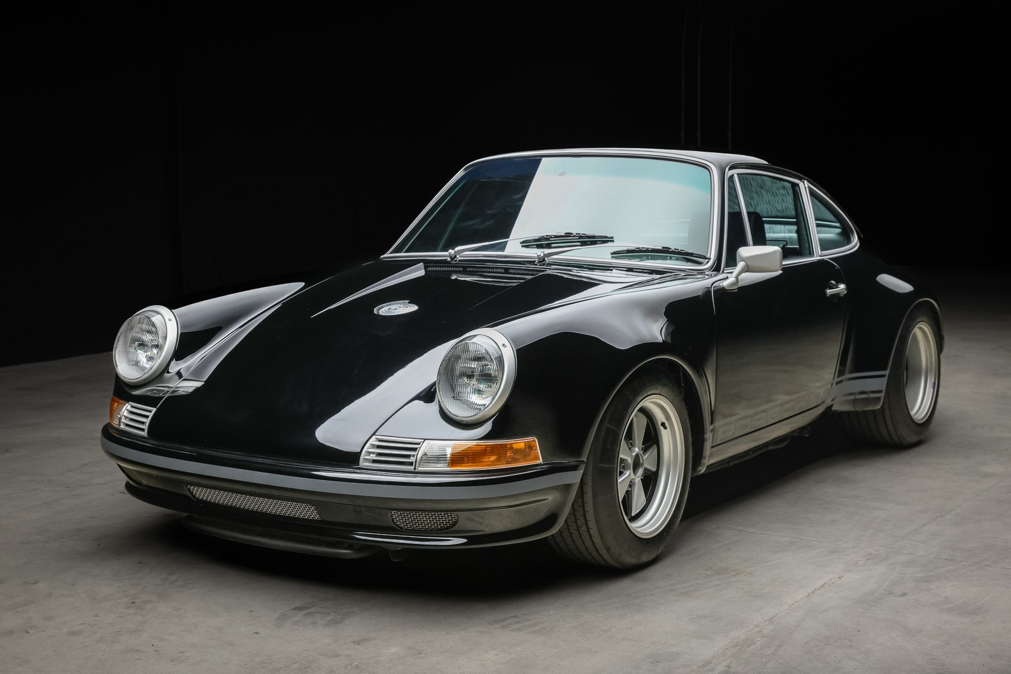 Staggered-width Braid 15″ Fuchs-style alloy wheels are mounted with Michelin TB5 tires measuring 18/60 up front and 26/62 out back. Braking is handled by cross-drilled rotors with red Porsche-branded calipers at all corners.