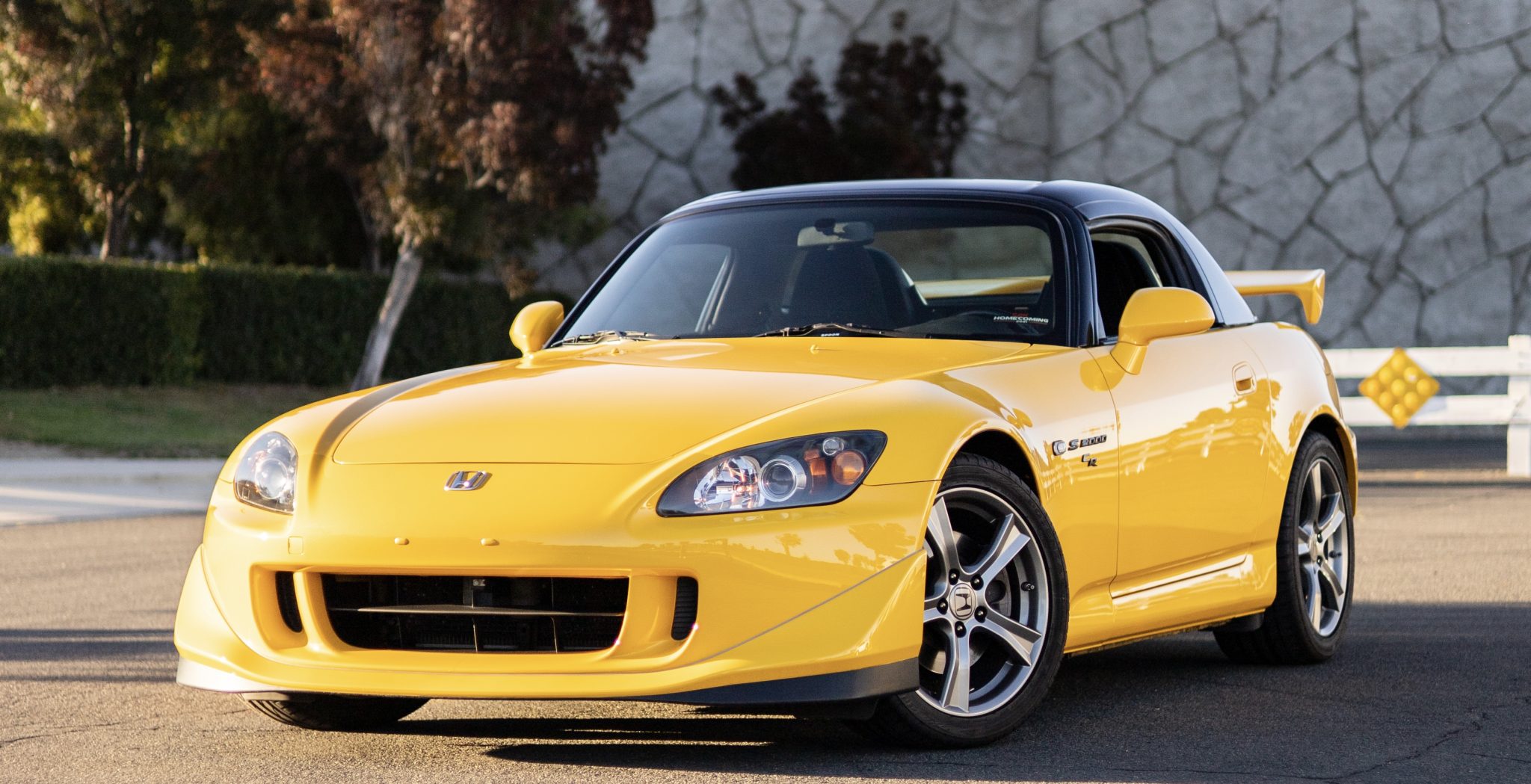 The 17” staggered-width factory alloy wheels show blemishes and wear 215/45 front and 255/40 rear Bridgestone Potenza S-04 Pole Position tires that were mounted in February 2021. The CR model features higher-rate springs, stiffer anti-roll bars, and a quicker steering ratio compared to a standard AP2 S2000. Stainless-steel brake lines have been fitted.