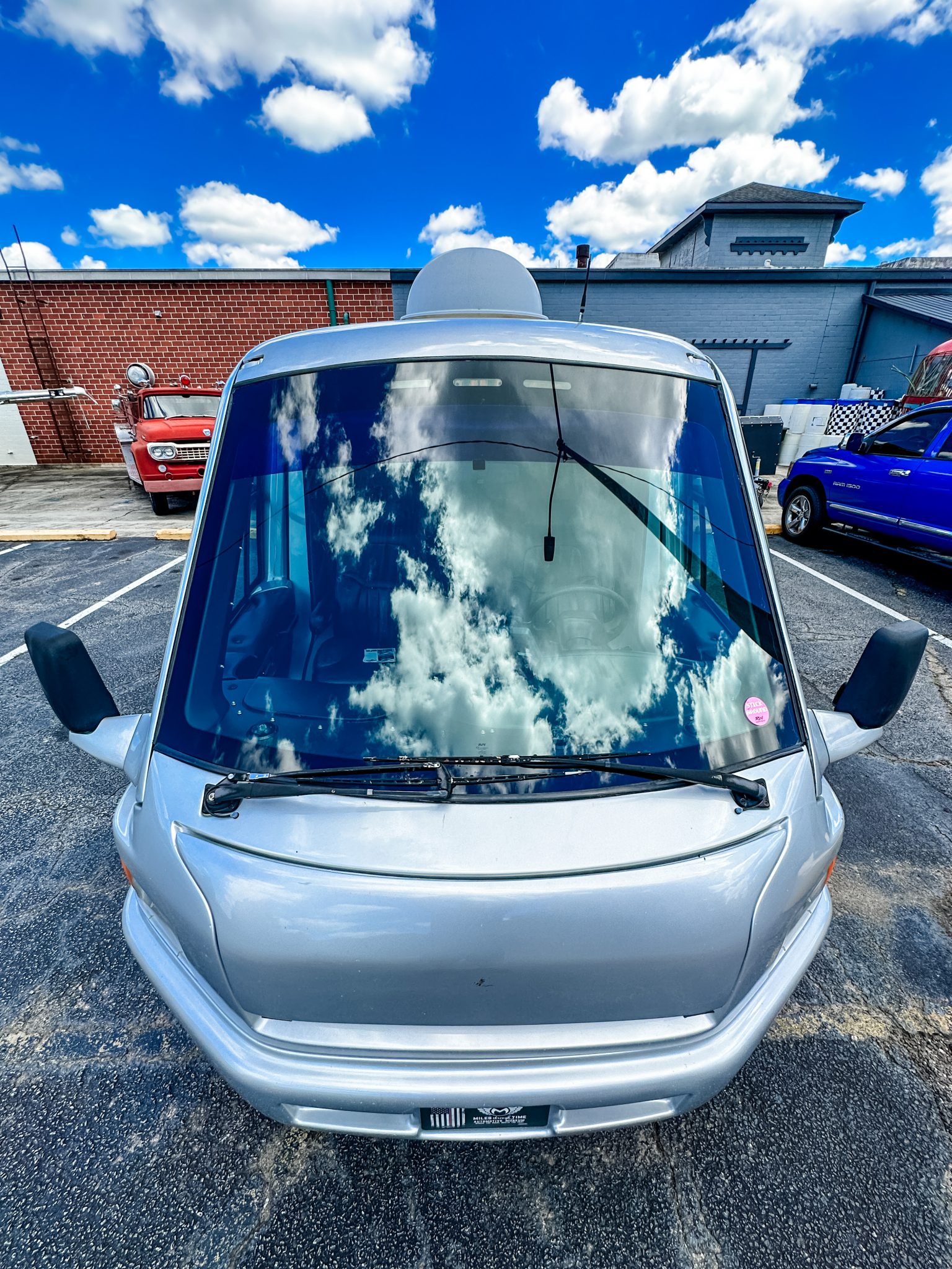 Chrome-finished 16″ MHT wheels are mounted with 235/85 Toyo Open Country H/T II tires. The coach rides on a carbon-steel spaceframe chassis and is equipped with an air suspension. Braking is provided by four-wheel discs. The idler arm was replaced under current ownership.