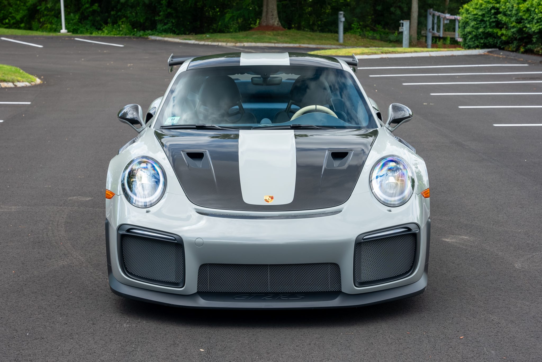Sea Blue 20″ and 21″ magnesium center-lock wheels are mounted with Michelin Pilot Sport Cup 2 tires measuring 265/35 up front and 325/30 out back. The car is equipped with adjustable dampers and anti-roll bars, Porsche Active Suspension Management, Porsche Stability Management, and rear-axle steering. A front-axle lift system was optioned, while Porsche Ceramic Composite Brakes were standard on the GT2 RS and feature yellow calipers and cross-drilled rotors.