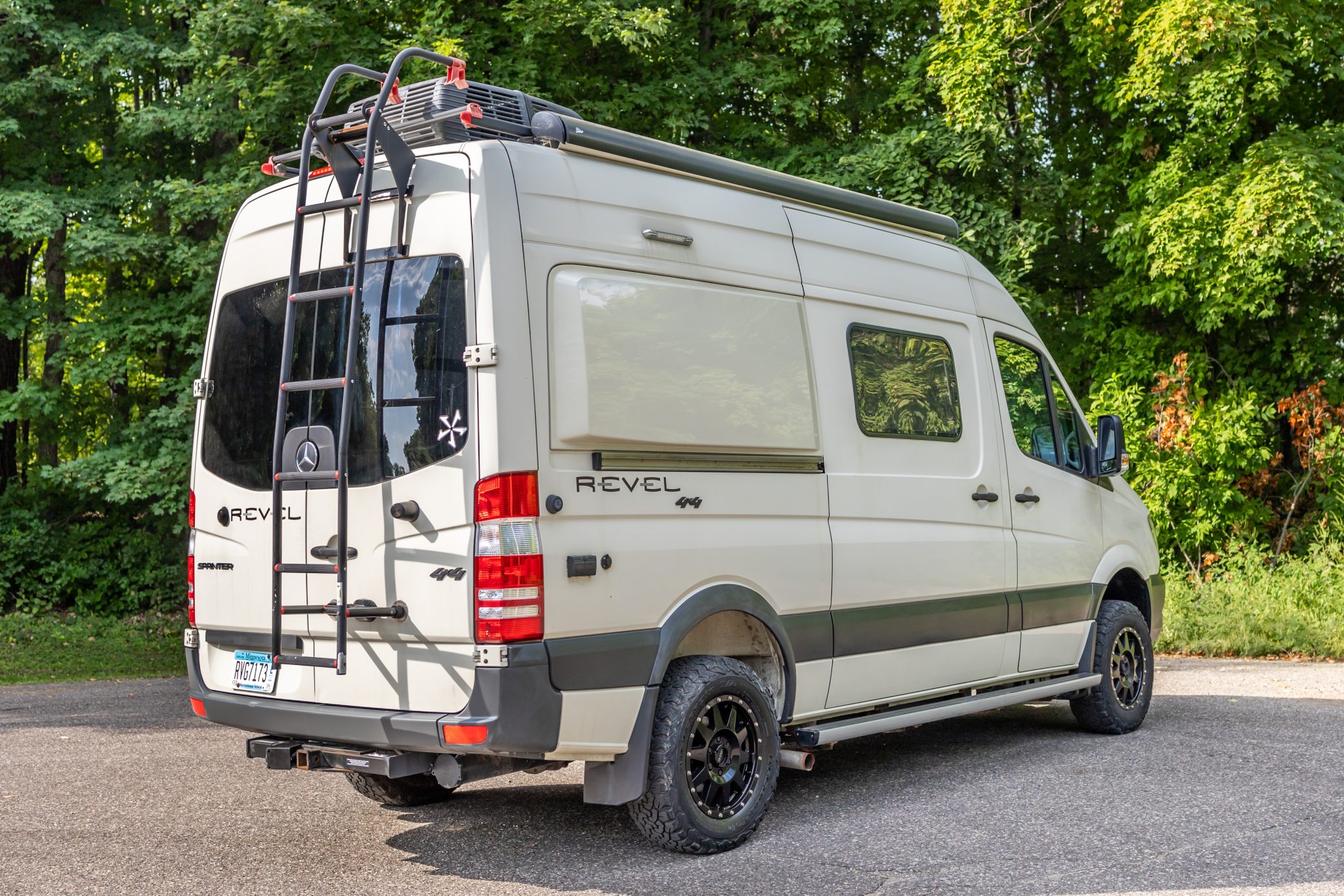 Black-finished 17” Method wheels are mounted with 245/70 BFGoodrich All-Terrain T/A K02 tires, and a full-size spare is housed under the rear of the van. Stopping power is provided by four-wheel disc brakes.