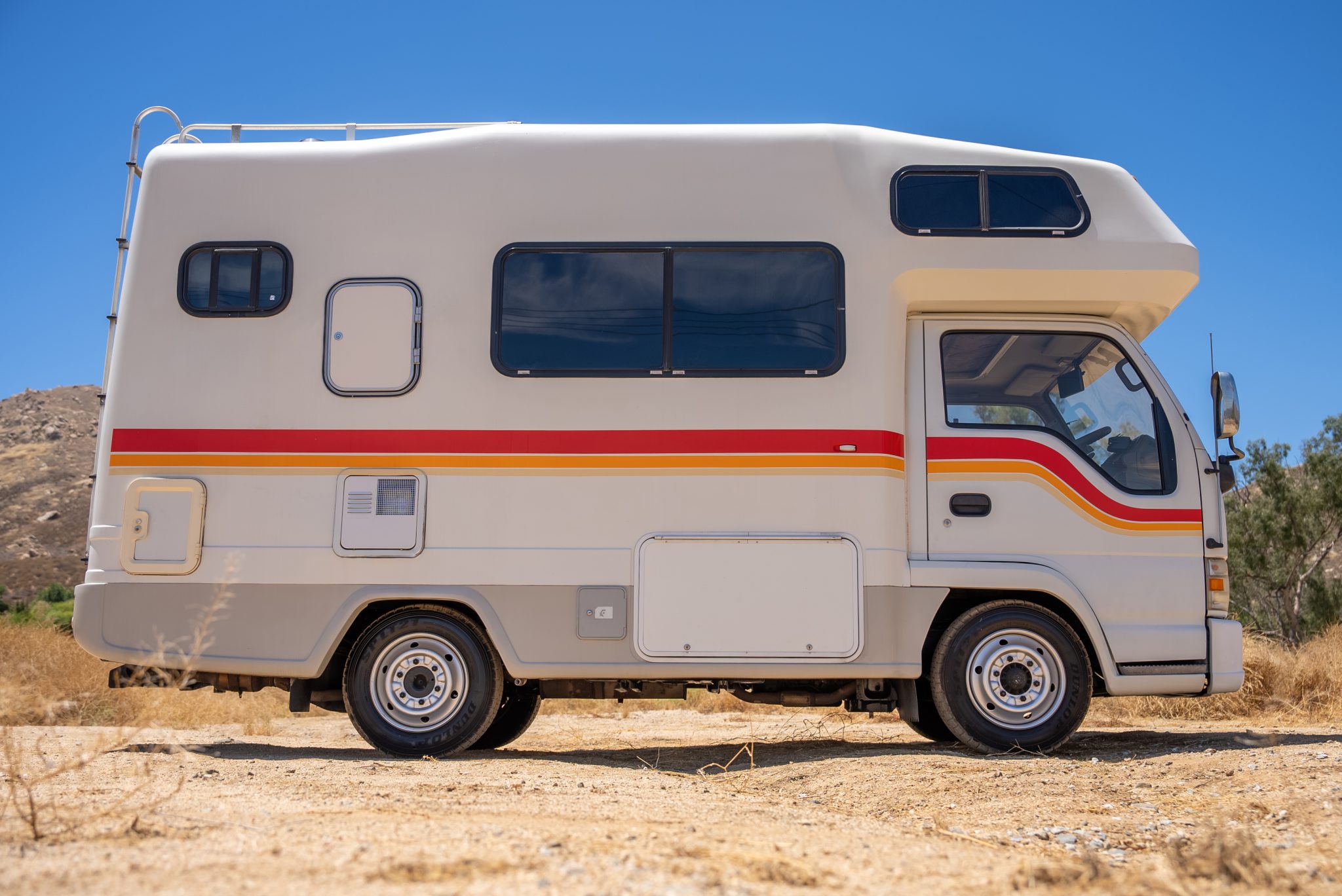 Silver 15.5″ steel wheels are mounted with 195/70 Dunlop SP LT21 tires. Stopping power is provided by front disc and rear drum brakes.