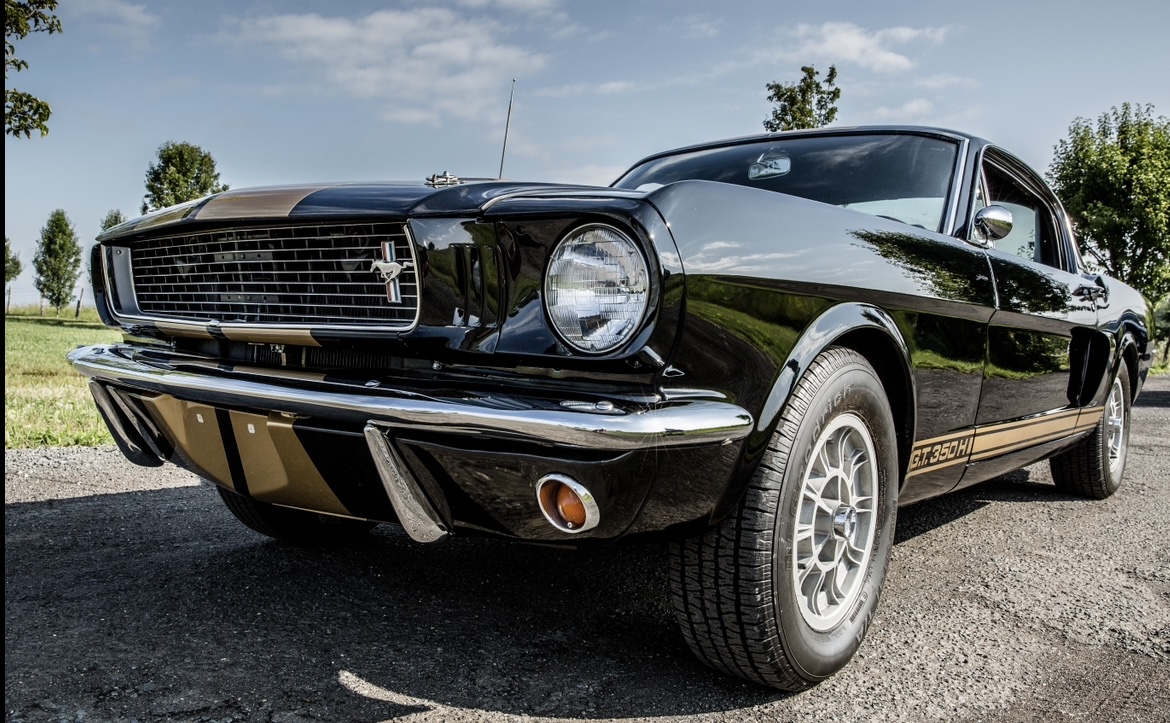 Silver 14″ ten-spoke alloy wheels were optional for the GT350 in 1966 and wear 205/70 BFGoodrich Radial T/A tires, while a full-size spare is mounted in the trunk. Shelby chassis modifications included revised front suspension geometry, Kelsey-Hayes front disc brakes, and larger rear brake drums when compared to the contemporary standard Mustang. The selling dealer states that the brake system was overhauled in 2023.