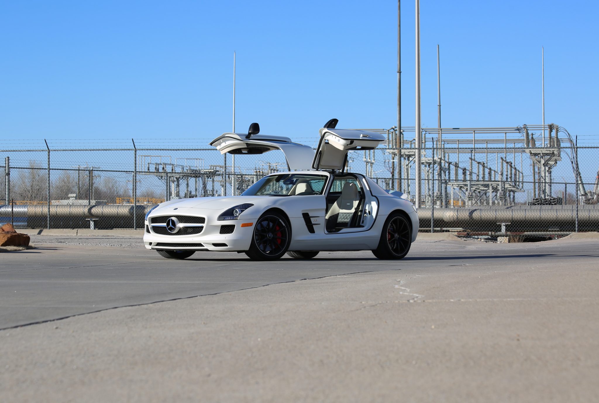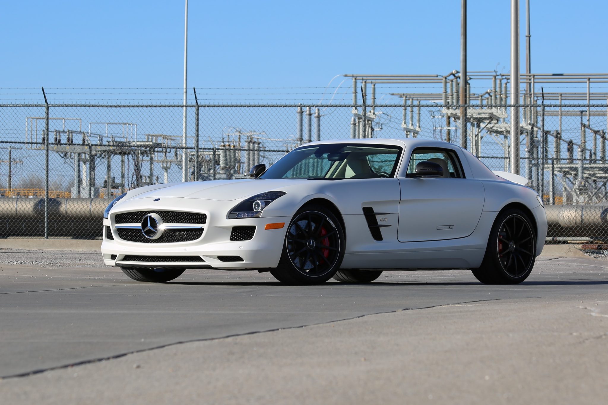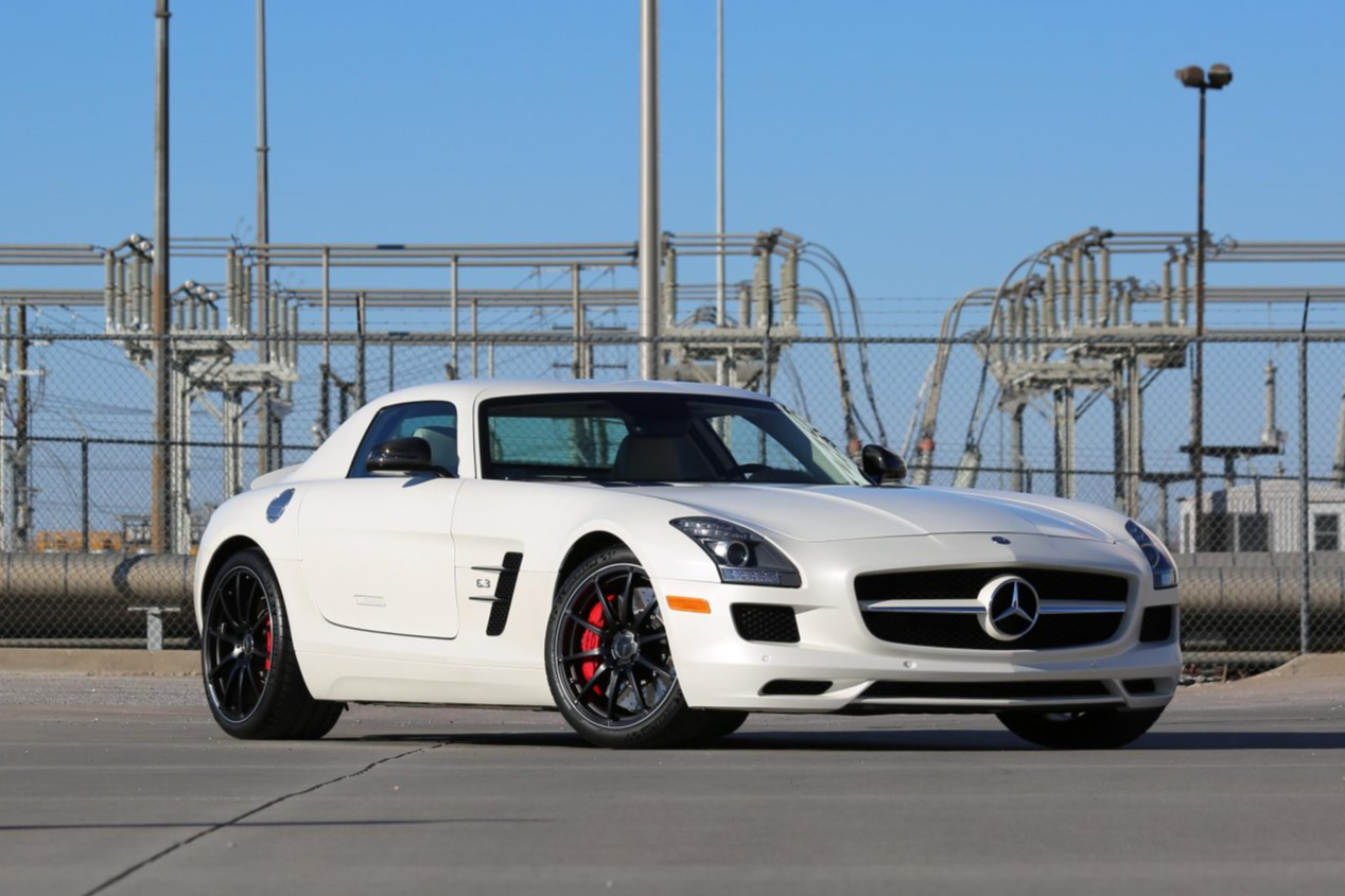 Staggered-width 19″ and 20″ 10-spoke alloy wheels are mounted with 265/35 front and 295/30 rear Michelin Pilot Sport Cup 2 tires showing 2021 date codes. The car is equipped with Adaptive Performance Suspension and speed-sensitive power steering. Stopping power is provided by red AMG-branded brake calipers over cross-drilled and slotted rotors at all four corners. The seller notes the tires were replaced in 2023. The removed factory tires are included in the sale.