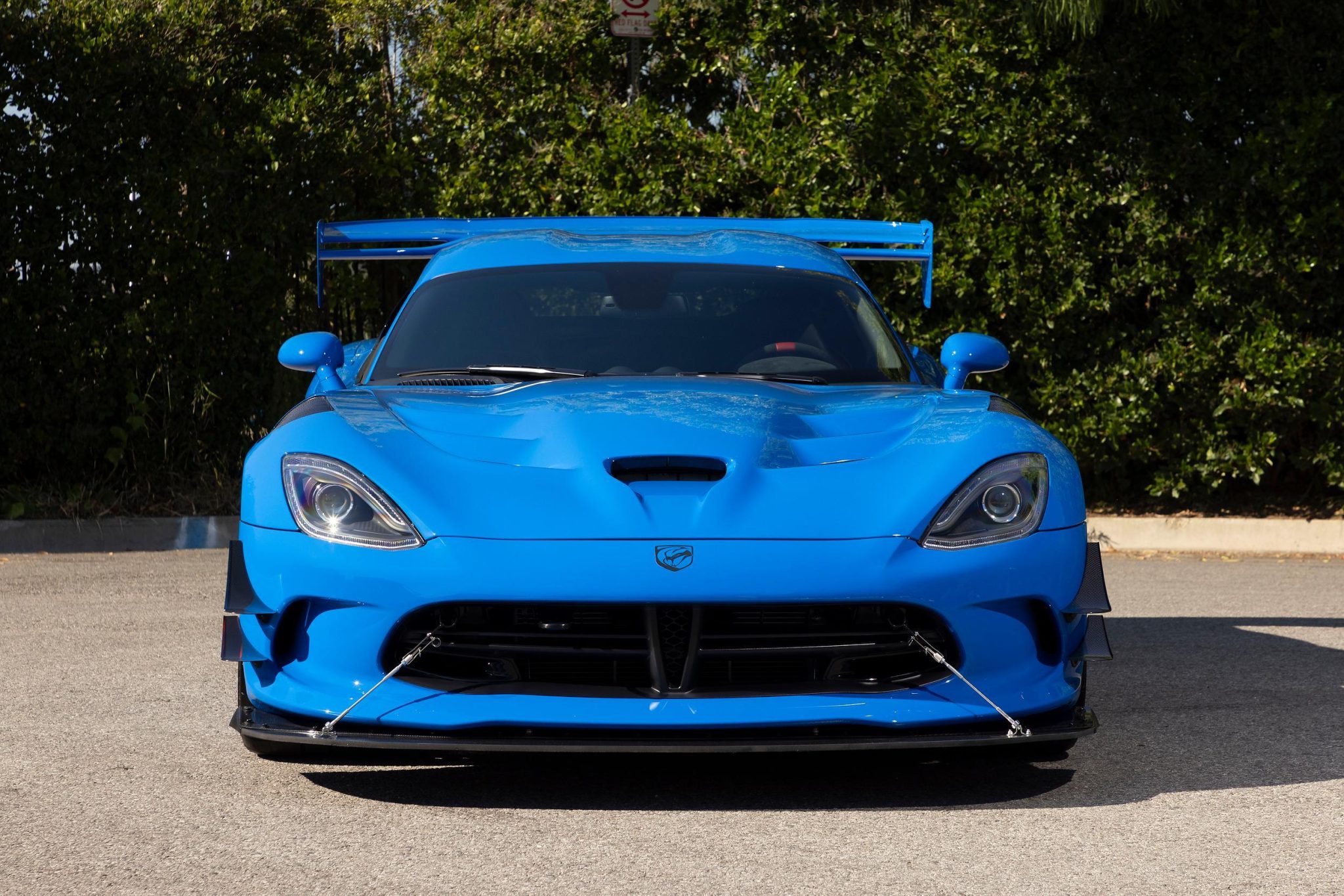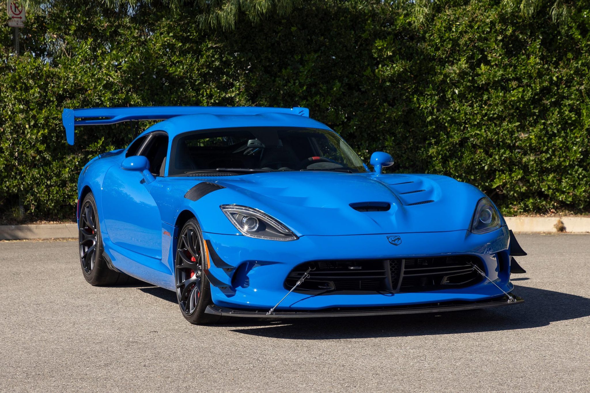 Staggered-width 19″ ACR wheels are finished in gloss black and wear ACR-branded Kumho Ecsta V720 tires measuring 295/25 up front and 355/30 out back. The car is equipped with a 10-way manually adjustable suspension, electronic launch control, and five-mode electronic stability control. Stopping power is provided by red Viper-branded Brembo calipers over carbon-ceramic matrix rotors at all four corners.
