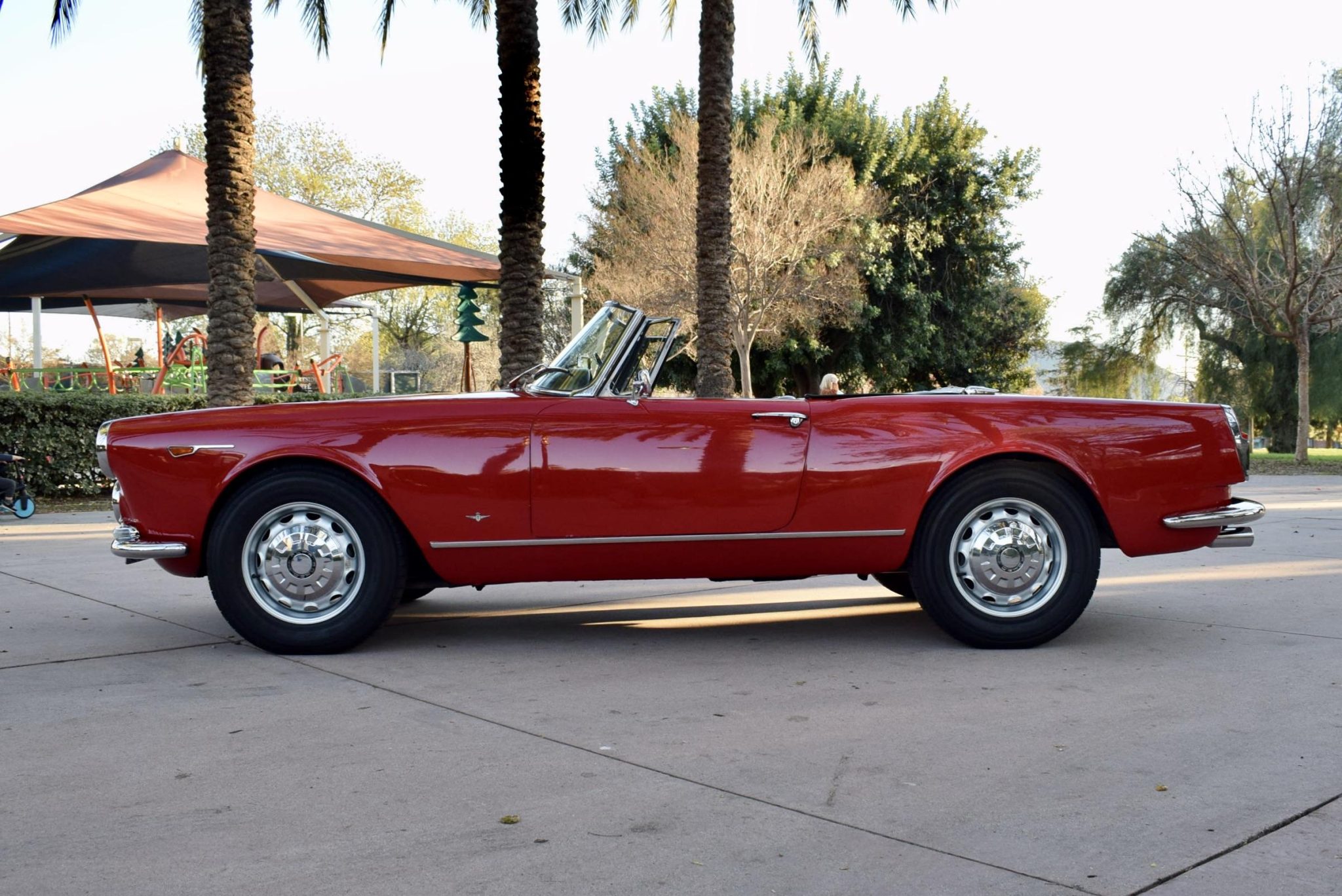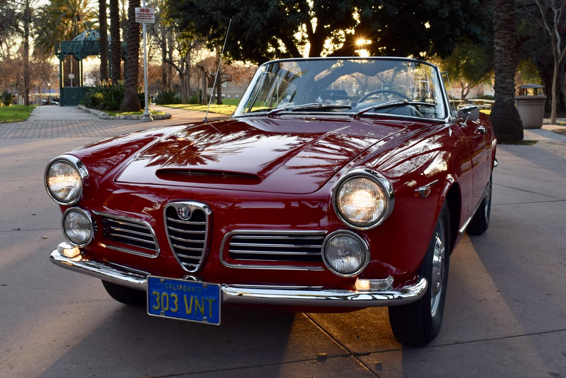 The Fergat steel wheels were powder-coated in preparation for the sale, and they are mounted with chrome hubcaps and 185R400 Michelin X radial tires. A matching spare wheel and tire are stowed beneath the trunk floor. The 2600 Spider features a coil-sprung independent front suspension and a live rear axle. Stopping power is provided by disc brakes at all four corners, and a replacement master cylinder and parking brake cables were installed in 2023.