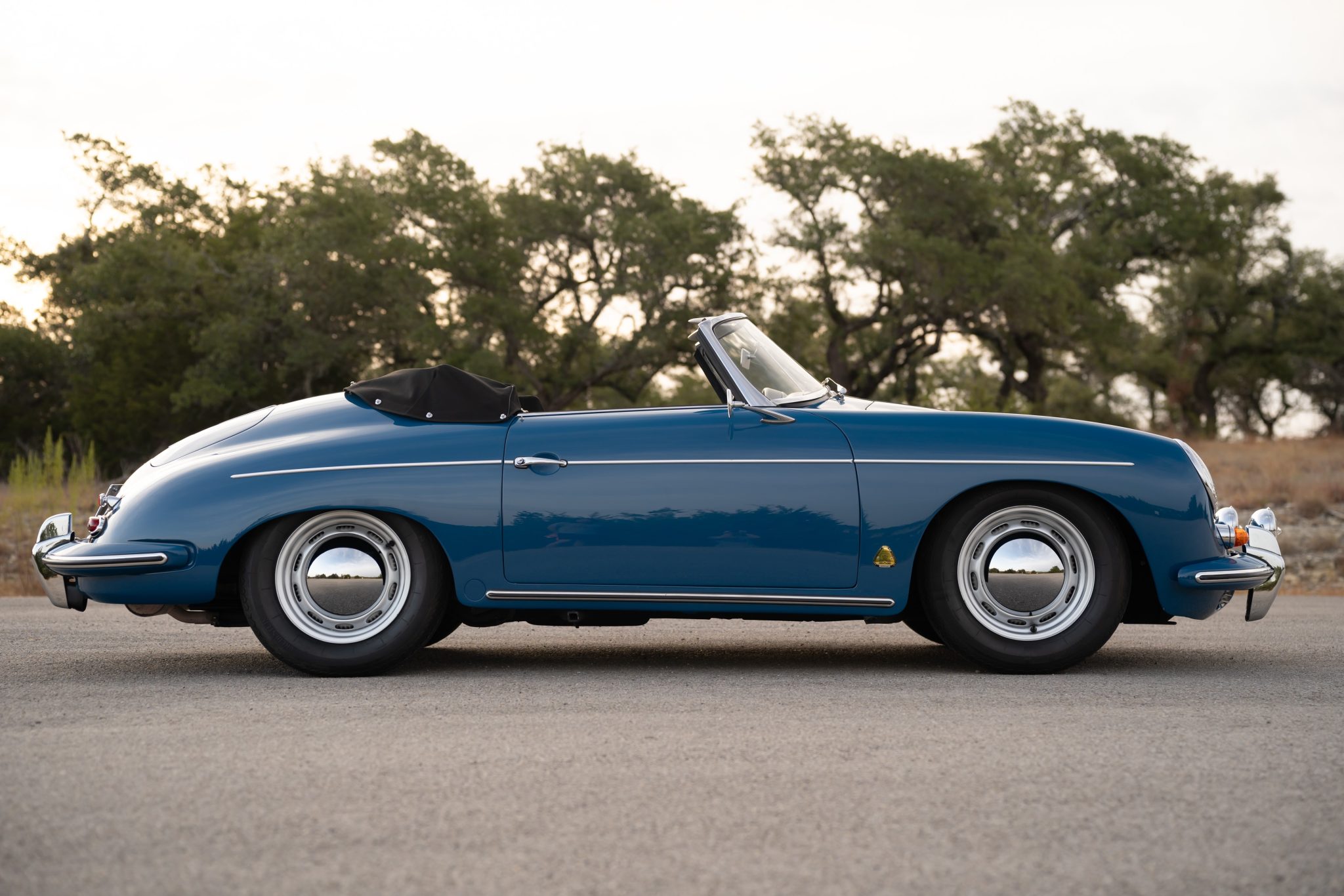 Silver-finished 15″ steel wheels wear bright hubcaps and are mounted with 165-width Vredestein Sprint Classic tires, while a matching spare is stored in the front trunk compartment. Stopping power is provided by four-wheel finned drum brakes.