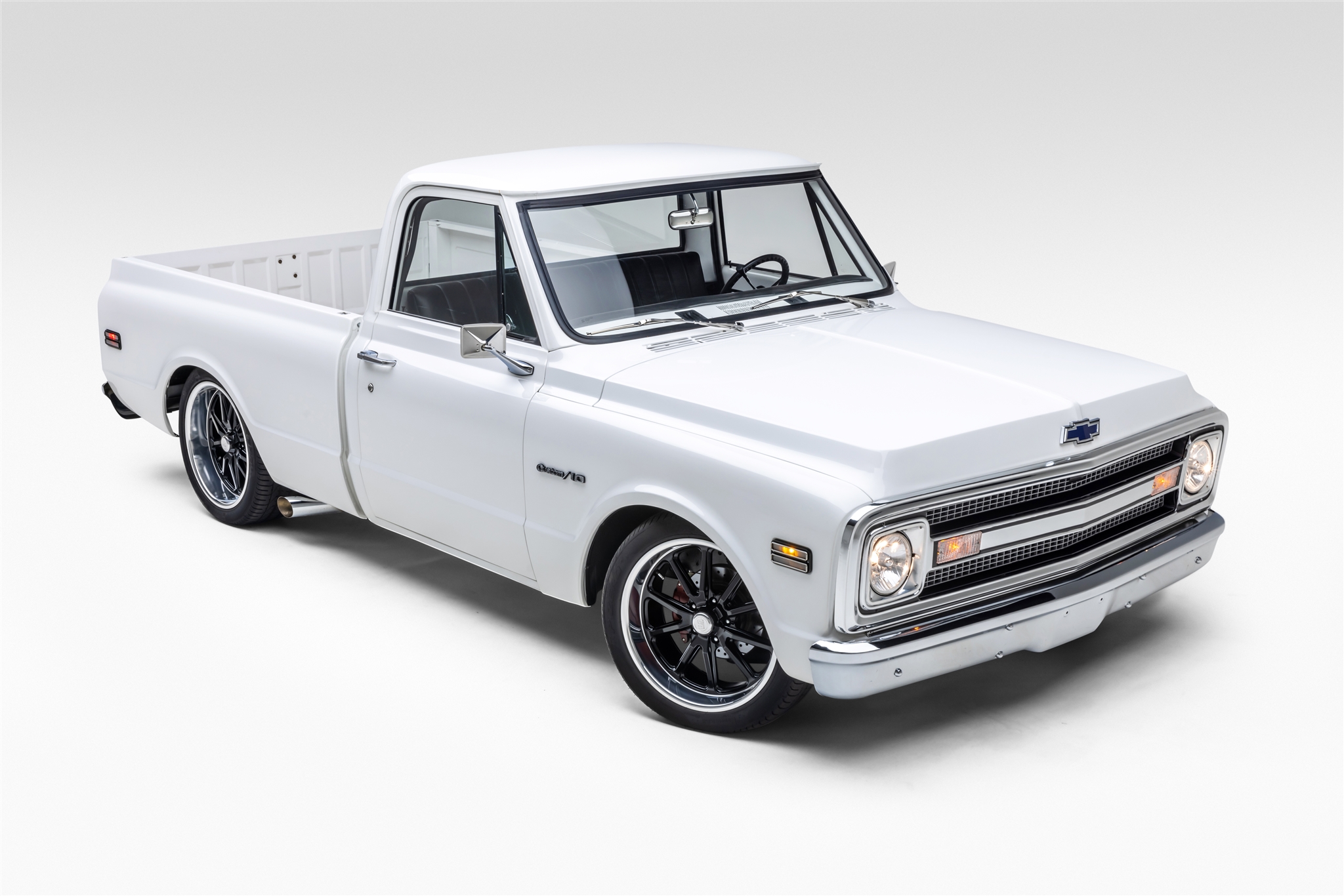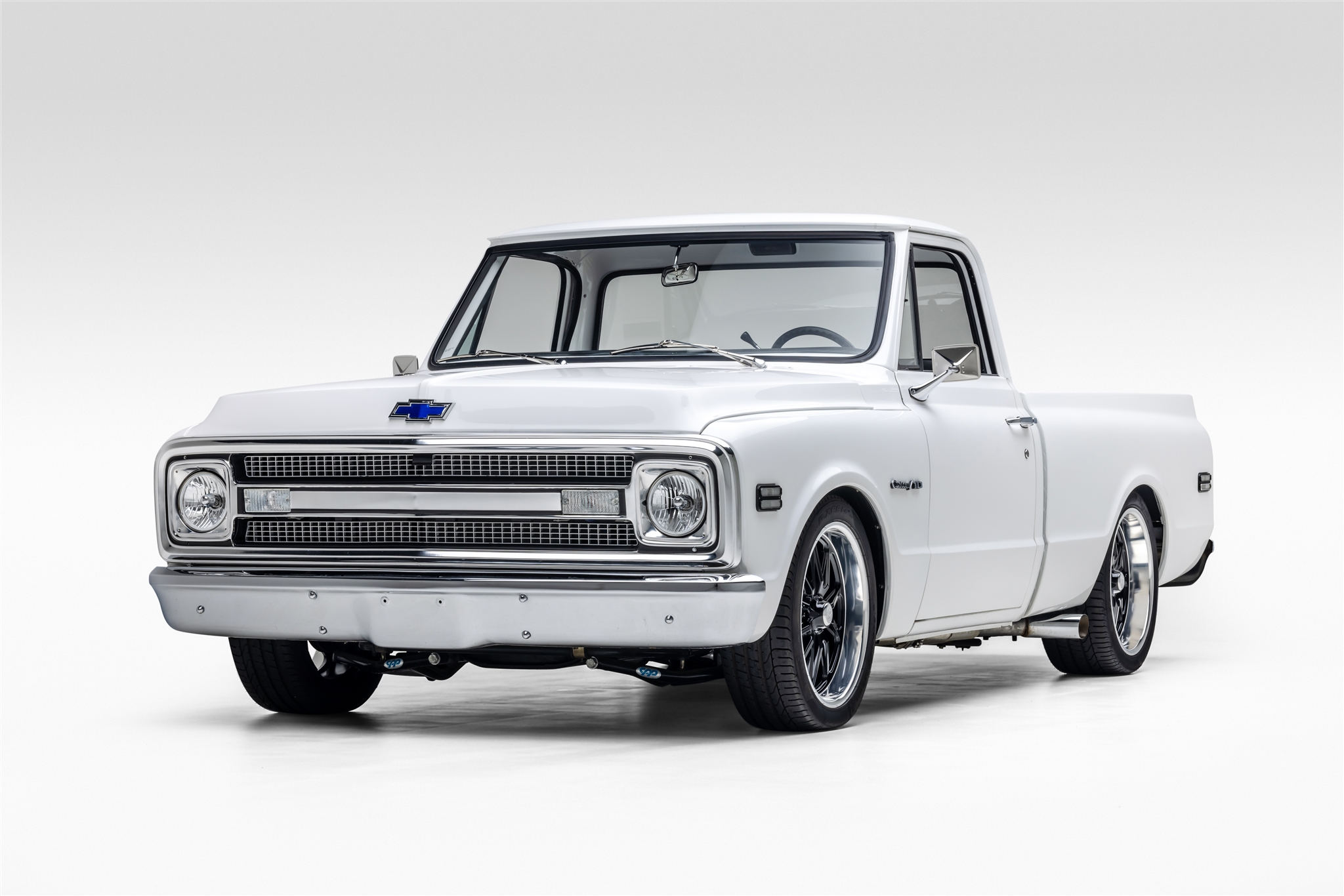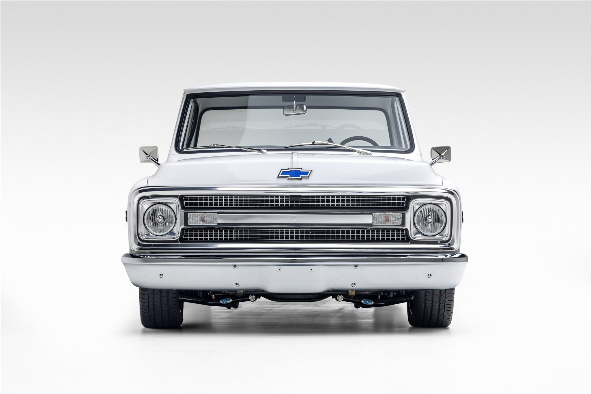 Black-finished 20″ US Mags wheels feature polished rims and are wrapped in 245/45 Pirelli P Zero tires. The chassis is fitted with Classic Performance Parts tubular front control arms as well as aftermarket shocks and sway bars. Braking is handled by red-finished calipers over cross-drilled and slotted rotors.