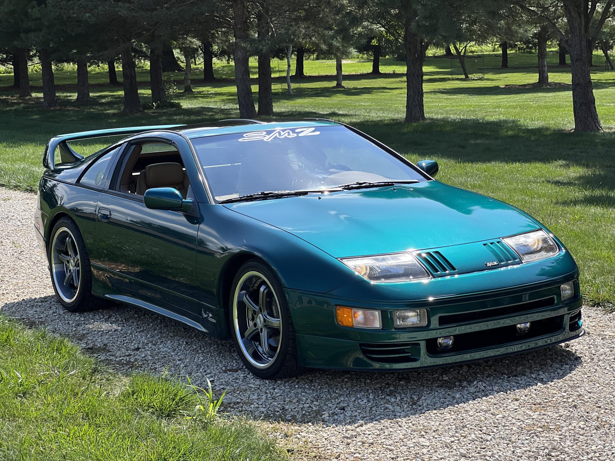 The 18″ TSW alloy wheels are mounted with Nexen N3000 tires measuring 225/40 up front and 275/35 out back and showing 2011 date codes. Stopping power is provided by GT-R-specification brakes, consisting of Nissan-branded calipers over larger cross-drilled rotors at all four corners, and the car is equipped with Super HICAS four-wheel steering. Suspension modifications include Stillen sway bars and progressive rate front and rear springs. SMZ specific 17″ front and 18″ rear Yokohama AVS wheels are included in the sale.