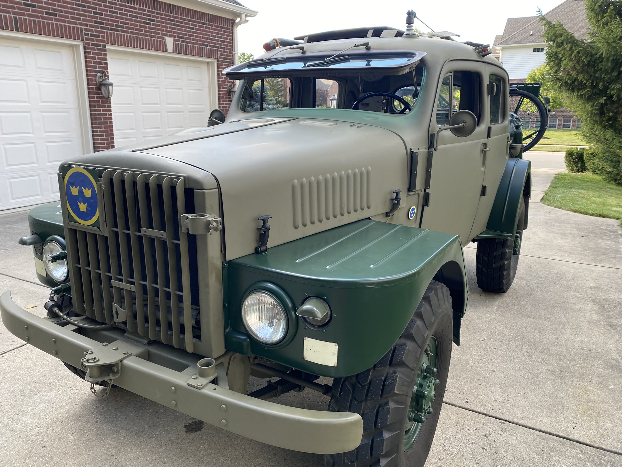 Steel 16″ wheels were reportedly refinished in green under current ownership and are mounted with 11″-wide Goodyear tires, while a full-size spare is stored at the rear. The truck rides on semi-elliptical springs and double-action telescopic shocks. Stopping power is provided by four-wheel drum brakes.