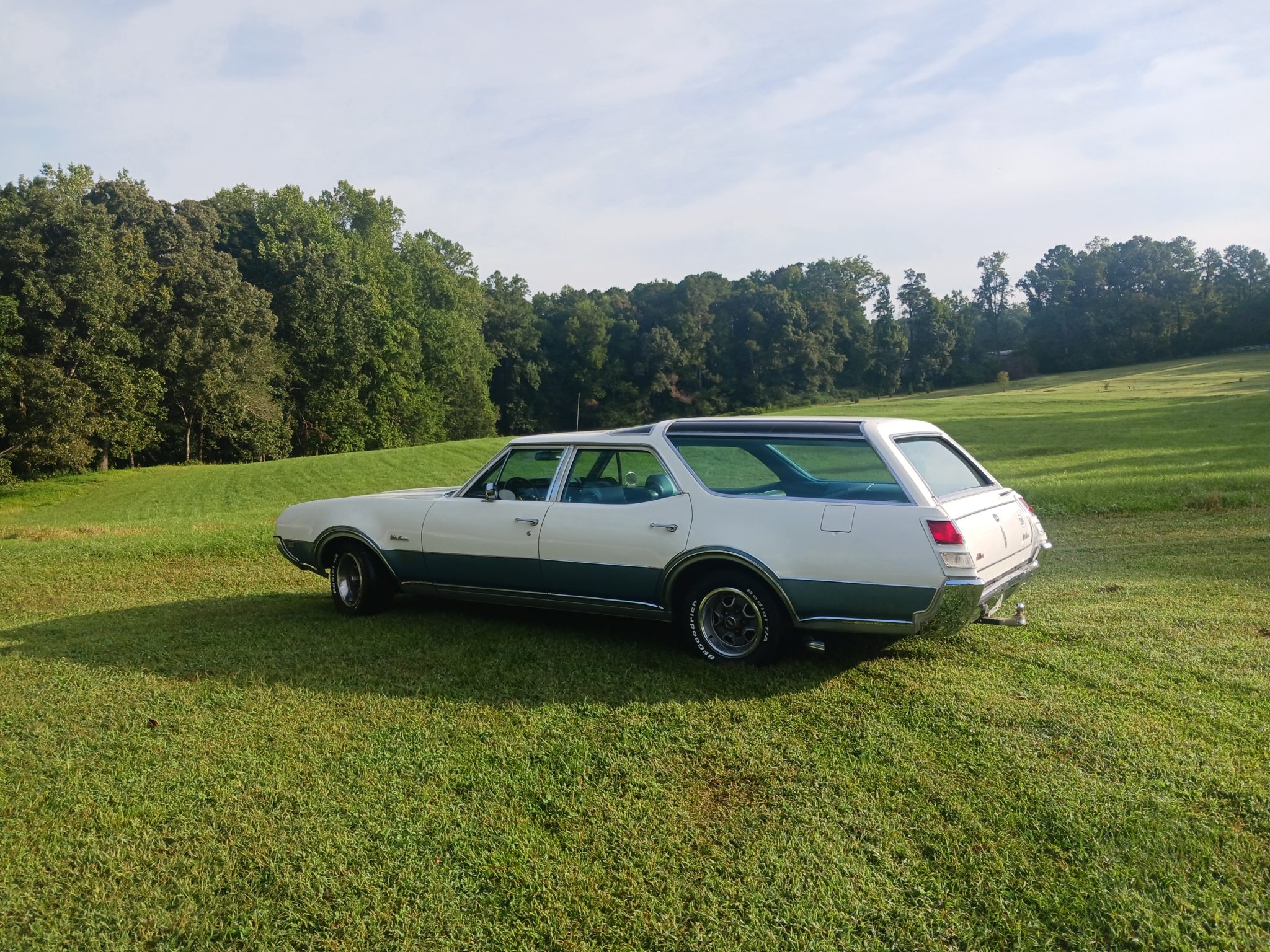 The 15″ SSII wheels feature argent silver centers with chrome bolt-on center caps, trim rings, and accents, and they are mounted with BFGoodrich Radial T/A tires that were reportedly installed within the past 100 miles. The Vista Cruiser rode on a 121″ wheelbase and featured an independent front suspension as well as a live rear axle with coil springs at all four corners. Stopping power is provided by power-assisted drums.