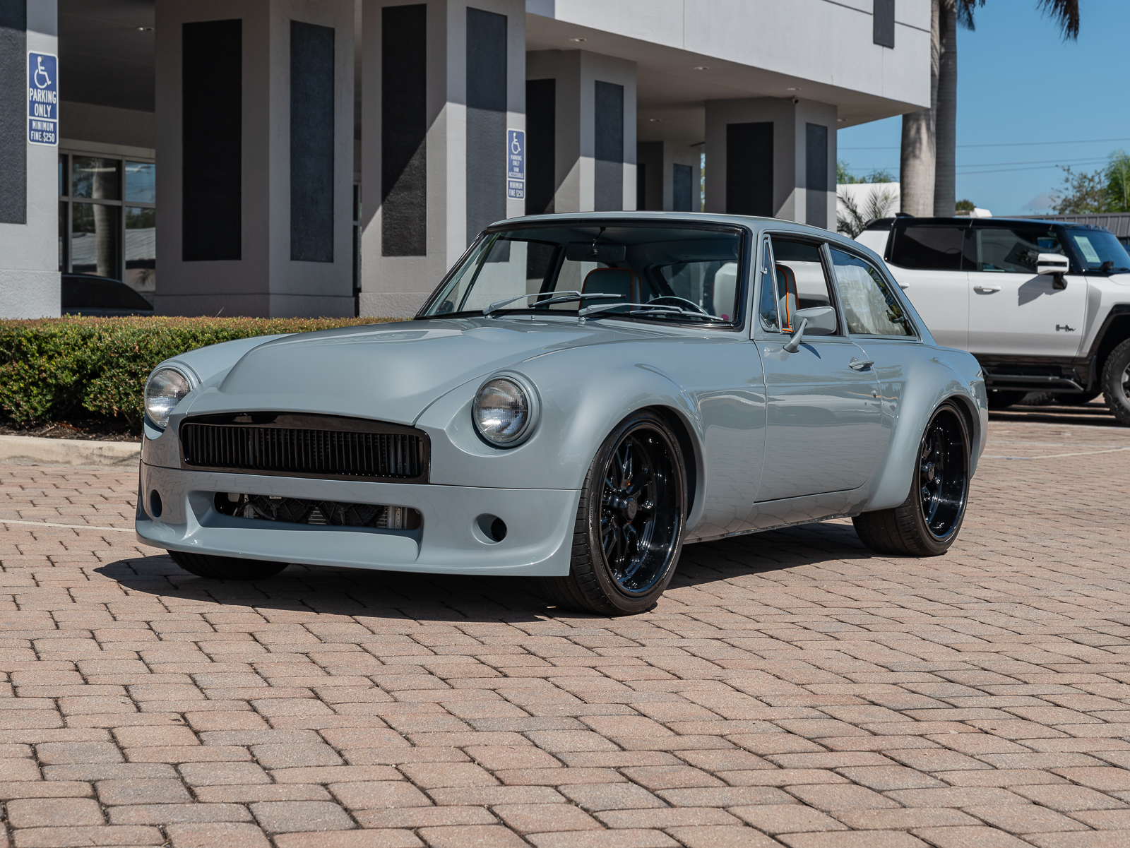 US Mags Rambler 18” wheels are finished in black and are mounted with 225/40 front and 255/35 rear Sailun Atrezzo SVA1 tires. Stopping power is provided by vented, slotted, and drilled Wilwood disc brakes with orange calipers. The car is further equipped with power steering, adjustable coilovers, and a four-link independent rear suspension.
