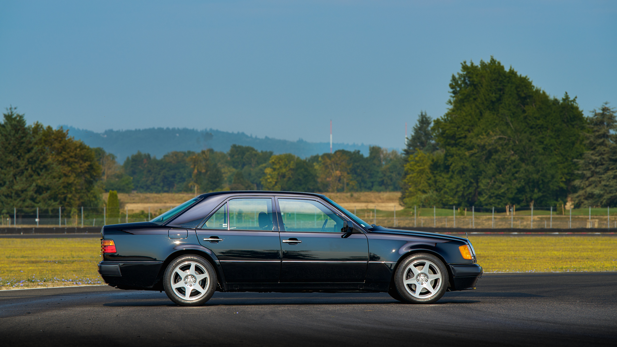 The 17″ Evo 2 wheels are mounted with 245/45 Michelin Pilot Super Sport tires showing 2011 date codes. The car is equipped with Automatic Slip Control (ASR), and braking is handled by four-wheel ventilated discs. The front brake pads and rotors were replaced in May 2019, and the rear pressure regulator was replaced in July 2023.