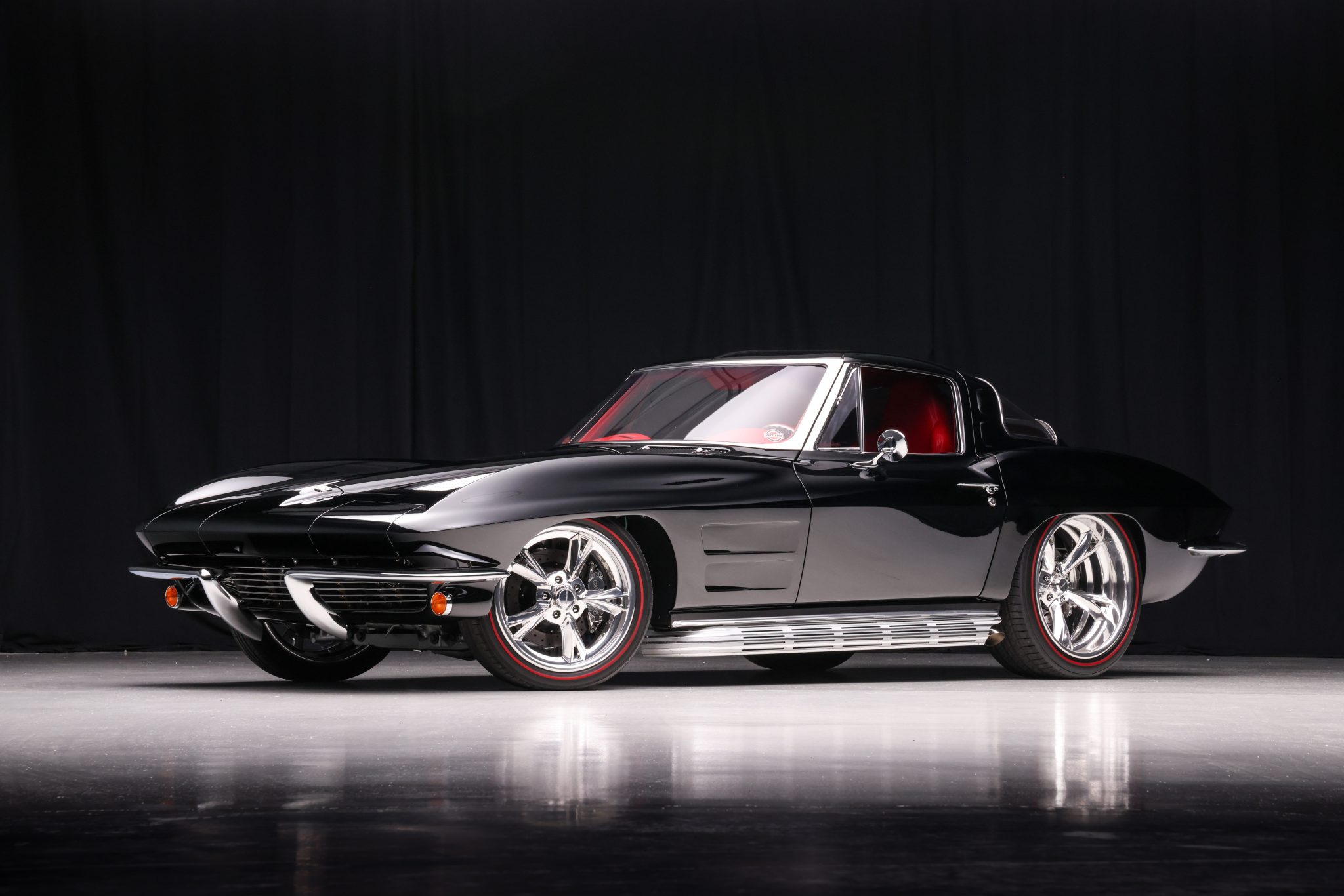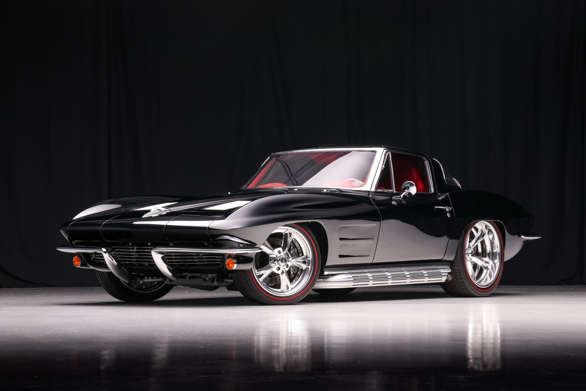 Polished Schott wheels measure 18″ up front and 20″ out back and are mounted with Diamond Back redline tires sized 235/40 up front and 275/40 out back. The Art Morrison chassis is equipped with tubular front control arms, a rear four-link setup, adjustable coilovers, front and rear sway bars, and Wilwood disc brakes with polished calipers over drilled and slotted rotors.