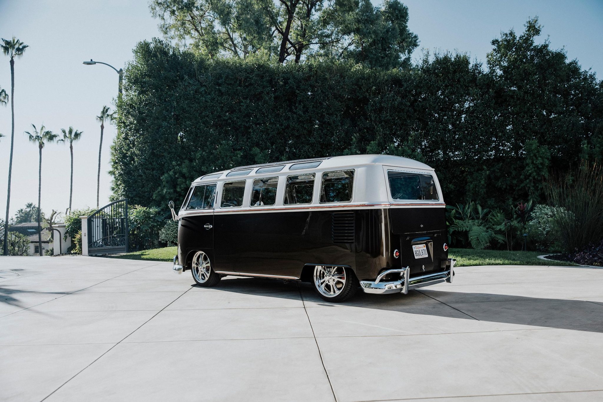 Polished 17″ Billet Specialties SLG05 Series forged aluminum wheels are mounted with Yokohama Advan tires. A set of four 15″ EMPI BRM wheels with Kenda tires is included in the sale and can be seen in the gallery. The bus rides on a lowered suspension, and stopping power is provided by red-painted Wilwood calipers over cross-drilled rotors at all four corners.