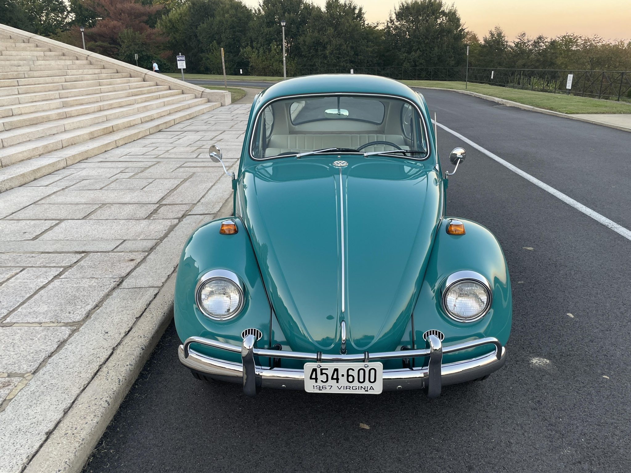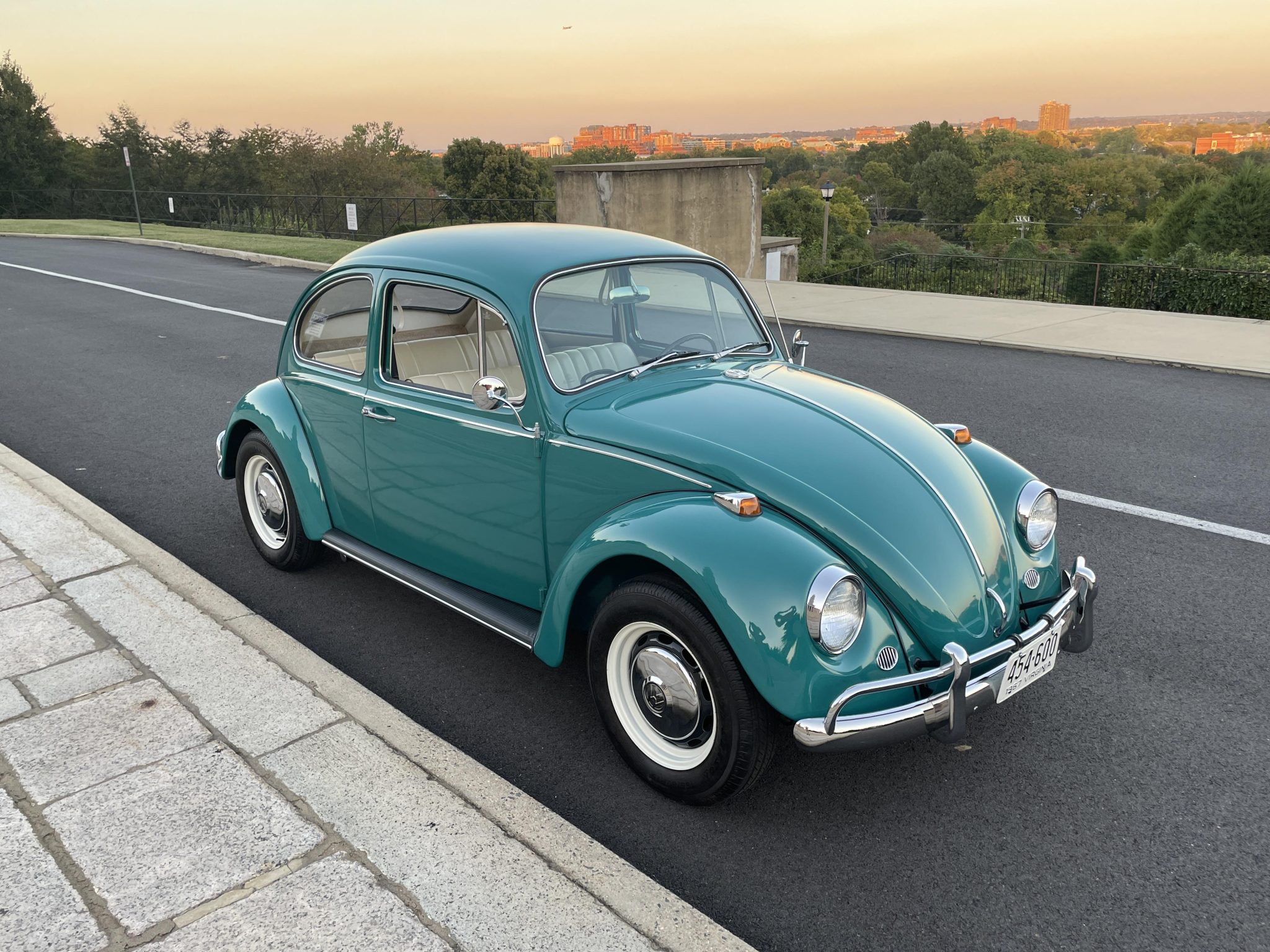 Black and white 15″ steel wheels wear chrome VW-stamped hubcaps and are mounted with 165/80 Classic Radial LL800 All-Season tires. A spare wheel mounted with a 135-series Michelin ZX tire is housed in the front trunk. Stopping power is provided by four-wheel drum brakes.