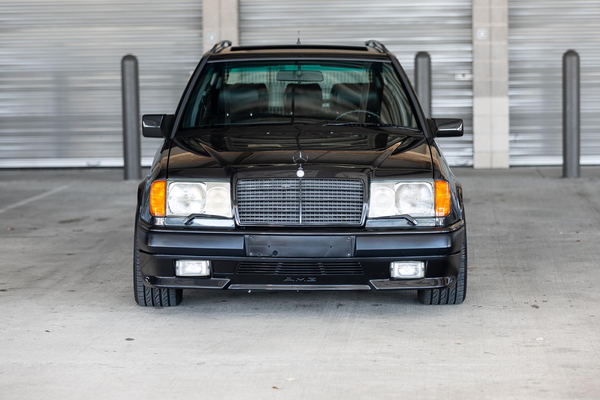 Body-color 17″ AMG Monoblock wheels feature polished lips and are mounted with 235/45 Pirelli P Zero Nero GT tires, while a full-size spare is stored in the trunk compartment. Braking is handled by power-assisted discs at each corner.