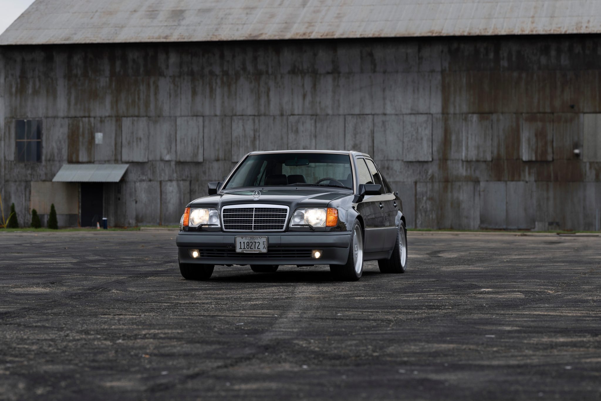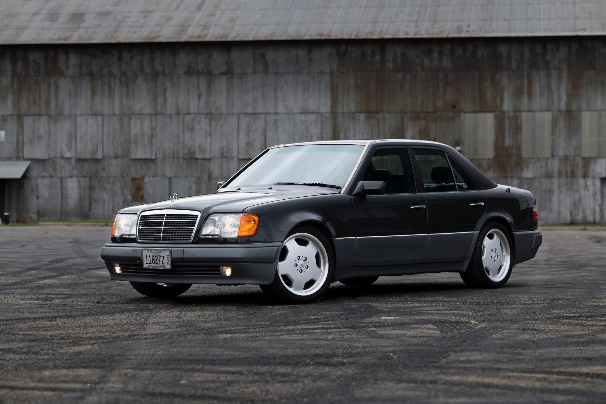 The 18” AMG Monoblock wheels wear 245/40 front and 275/35 rear Toyo Proxes Sport tires that were mounted in 2023. The car is equipped with Automatic Slip Control (ASR) as well as a self-leveling rear suspension. The E500 featured a wider track and lower ride height when compared with other W124 models, and it shared its front disc brakes with the contemporary R129 SL. The tie rod assembly was replaced in 2023, and work completed in preparation for the sale is said to have included replacement of the drag link, brake hoses, and brake fluid.
