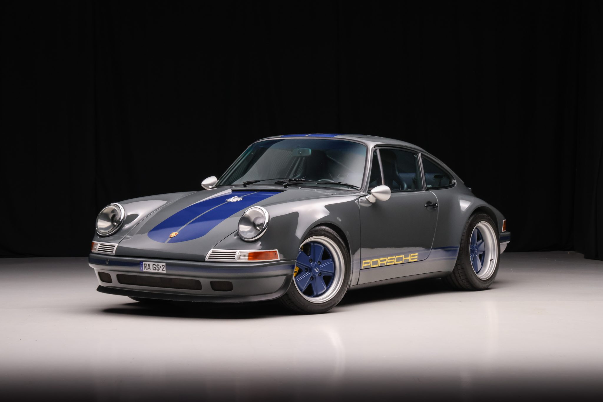 Blue 17″ Fuchs-style wheels feature anodized lips as well as GS-branded center caps and are mounted with 225/45 front and 275/40 rear Michelin Pilot Sport N3 tires. The car is fitted with Bilstein shocks, and stopping power is provided by yellow-painted 993 Turbo-sourced calipers over cross-drilled rotors at all four corners.