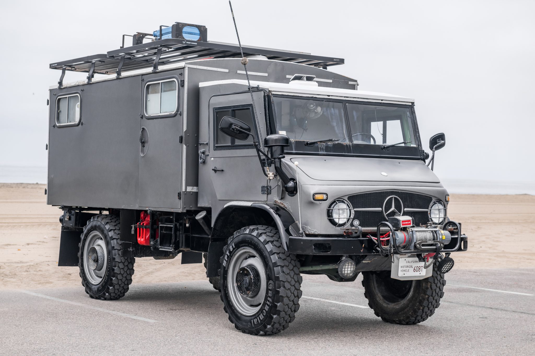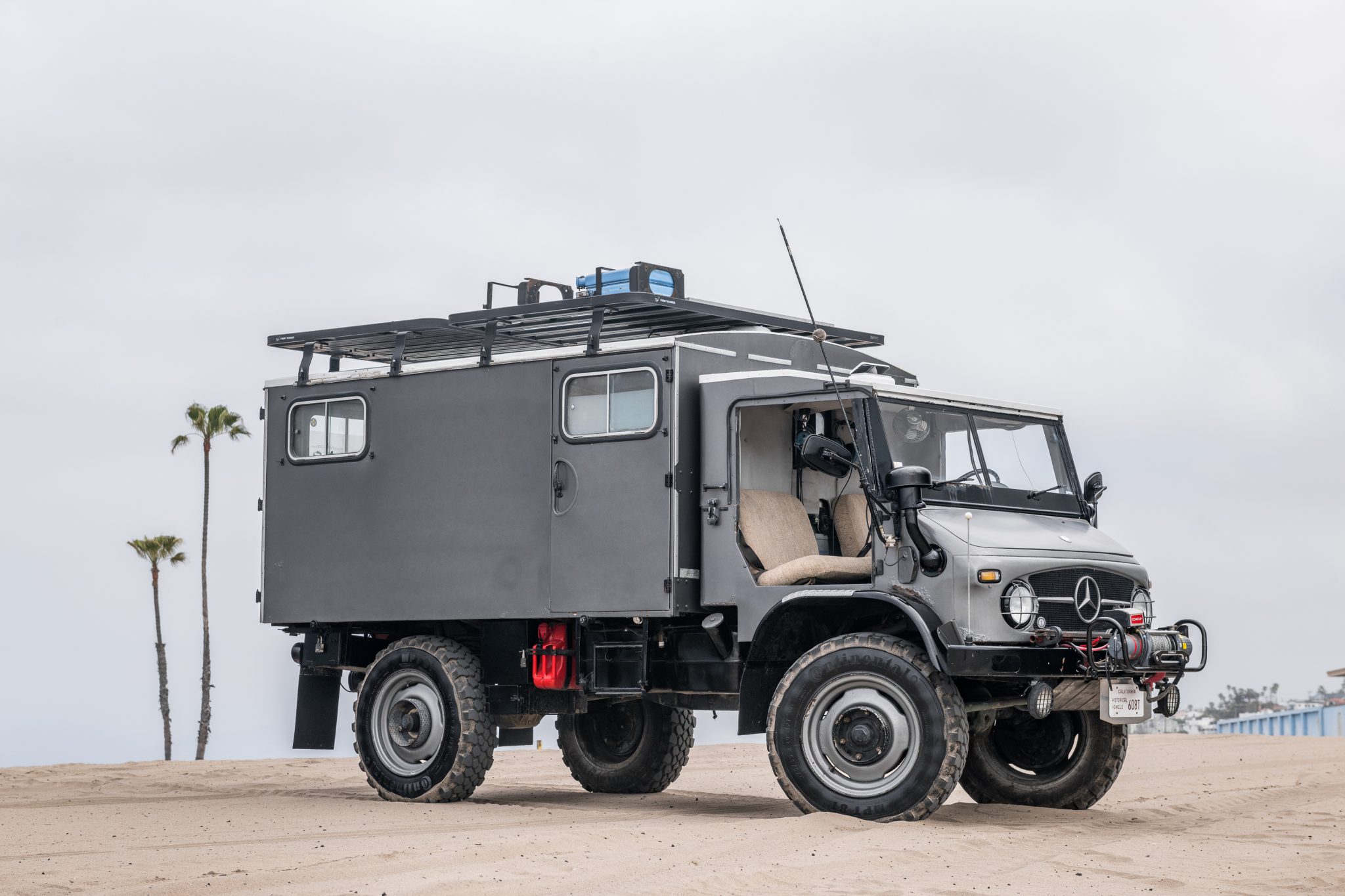 The 20” steel wheels are finished in gray and mounted with 275/80 Continental MPT 81 tires. A matching spare is housed under the driver’s side of the truck, and another is affixed to the rear of the box. A spare steel wheel and Koni shock absorbers are included in the sale.