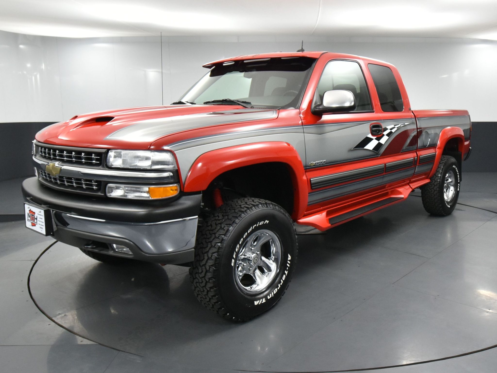 Chrome-finished 16″ American Racing wheels are mounted with BFGoodrich All-Terrain KO raised white-letter tires measuring 295/75. The truck has been lifted with Rancho RSX shocks, and stopping power is provided by disc brakes at all four corners. Mudflaps are fitted at the rear.
