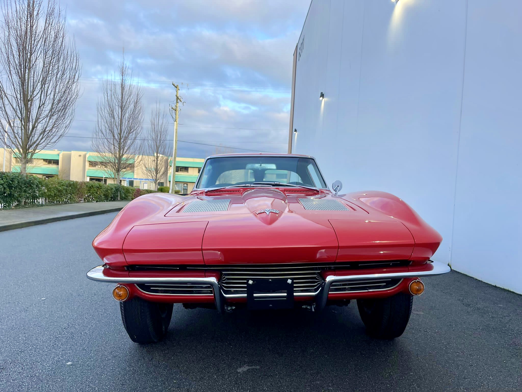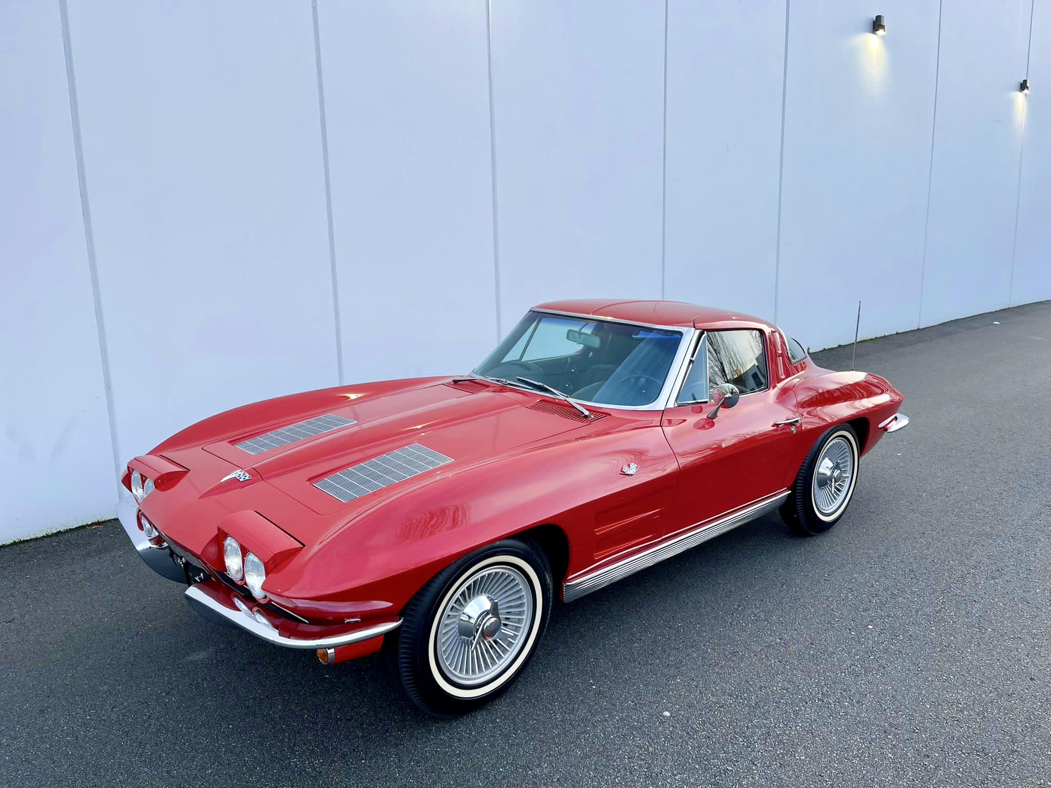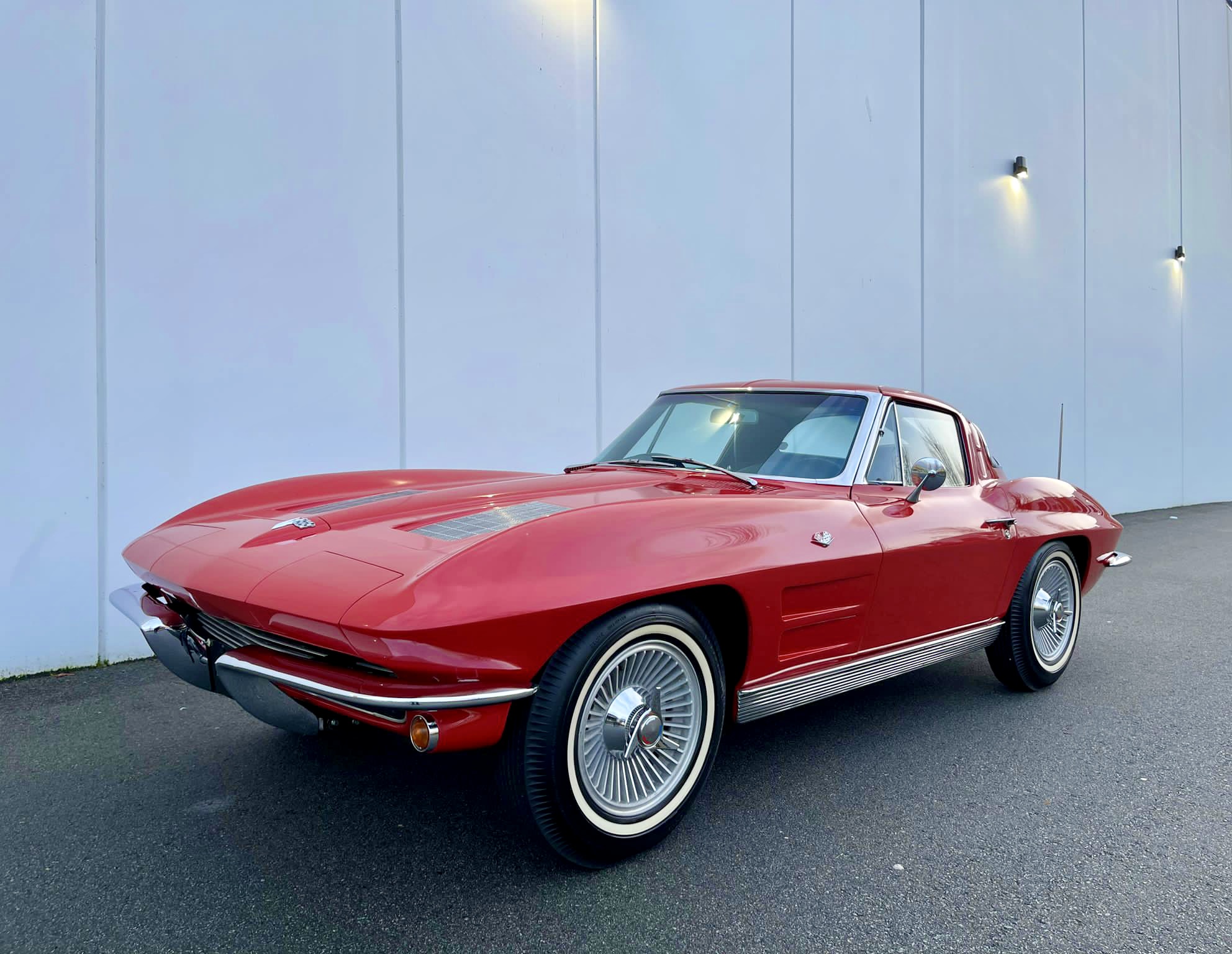 The 15″ turbine-style wheels wear three-eared knock-off spinners and are mounted with Firestone Deluxe Champion-branded thin whitewall tires. The C2 was the first Corvette to offer fully independent suspension, with upper and lower control arms at the front and a three-link setup with a transverse leaf spring at the rear. The car is equipped with power steering, and braking is handled by four-wheel drums.