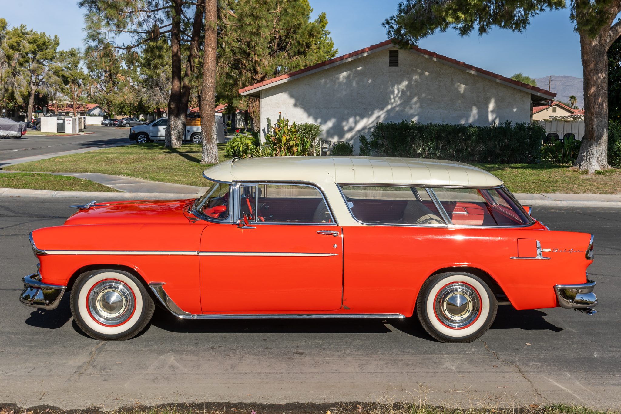 The 14″ steel wheels wear full covers and are mounted with BFGoodrich Silvertown Radial whitewall tires. Braking is provided by front and rear drums.