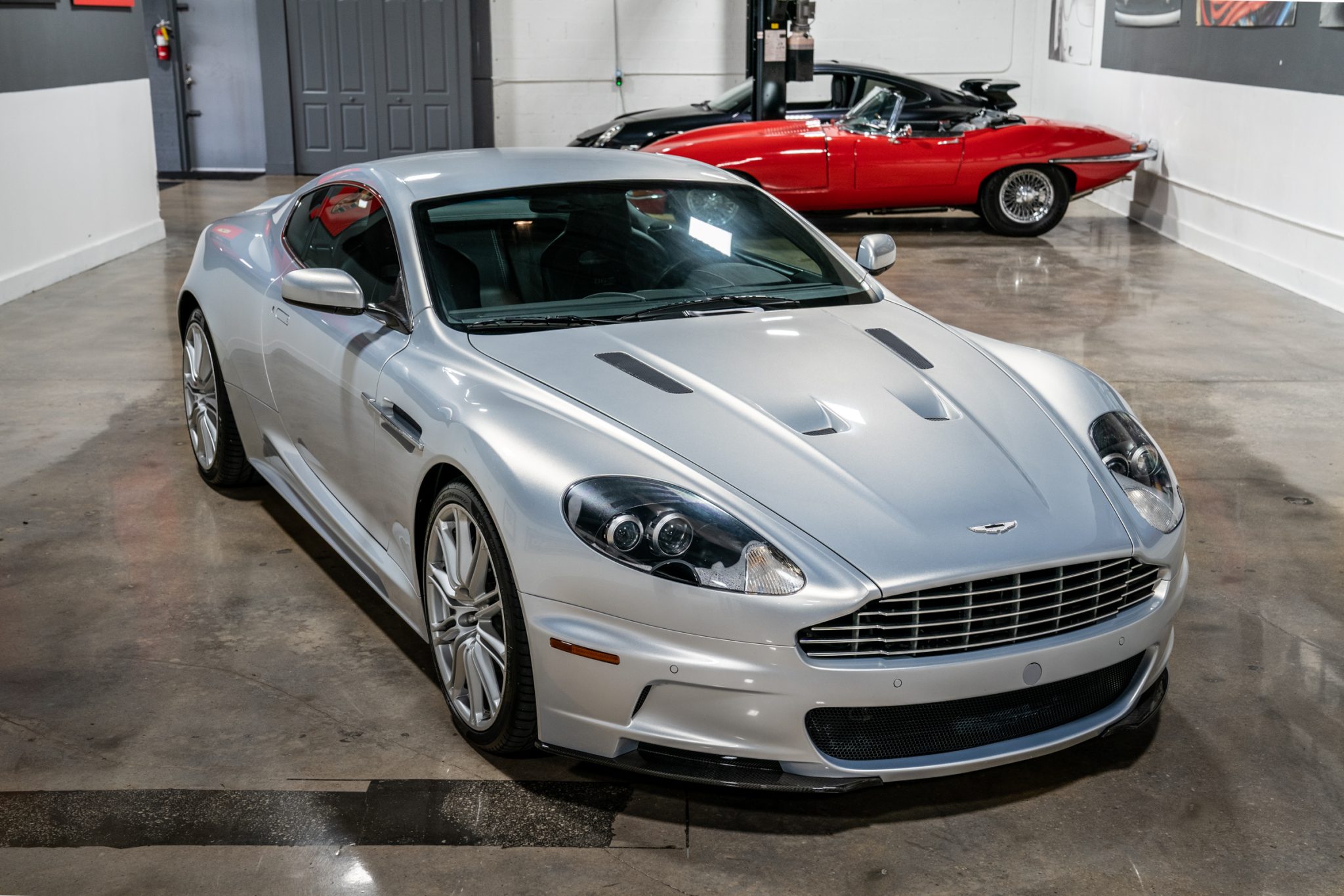 Silver 20″ double-spoke alloy wheels are wrapped in 245/35 front and 295/30 rear Pirelli P Zero tires that were mounted in 2023. Stopping power is provided by black six-piston front and four-piston rear Aston Martin S-branded calipers over cross-drilled carbon-ceramic rotors at all four corners. The brake fluid was flushed in preparation for the sale.