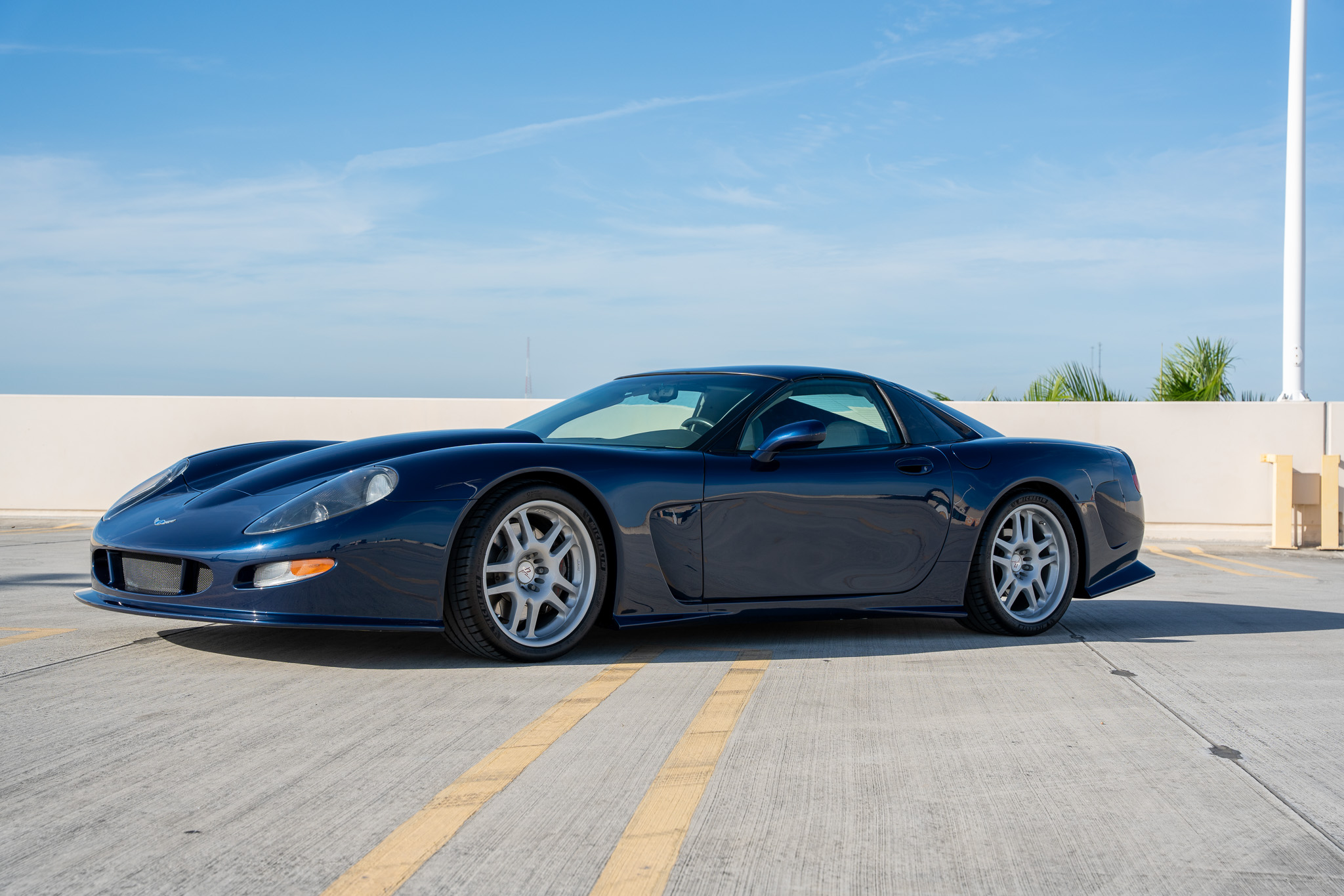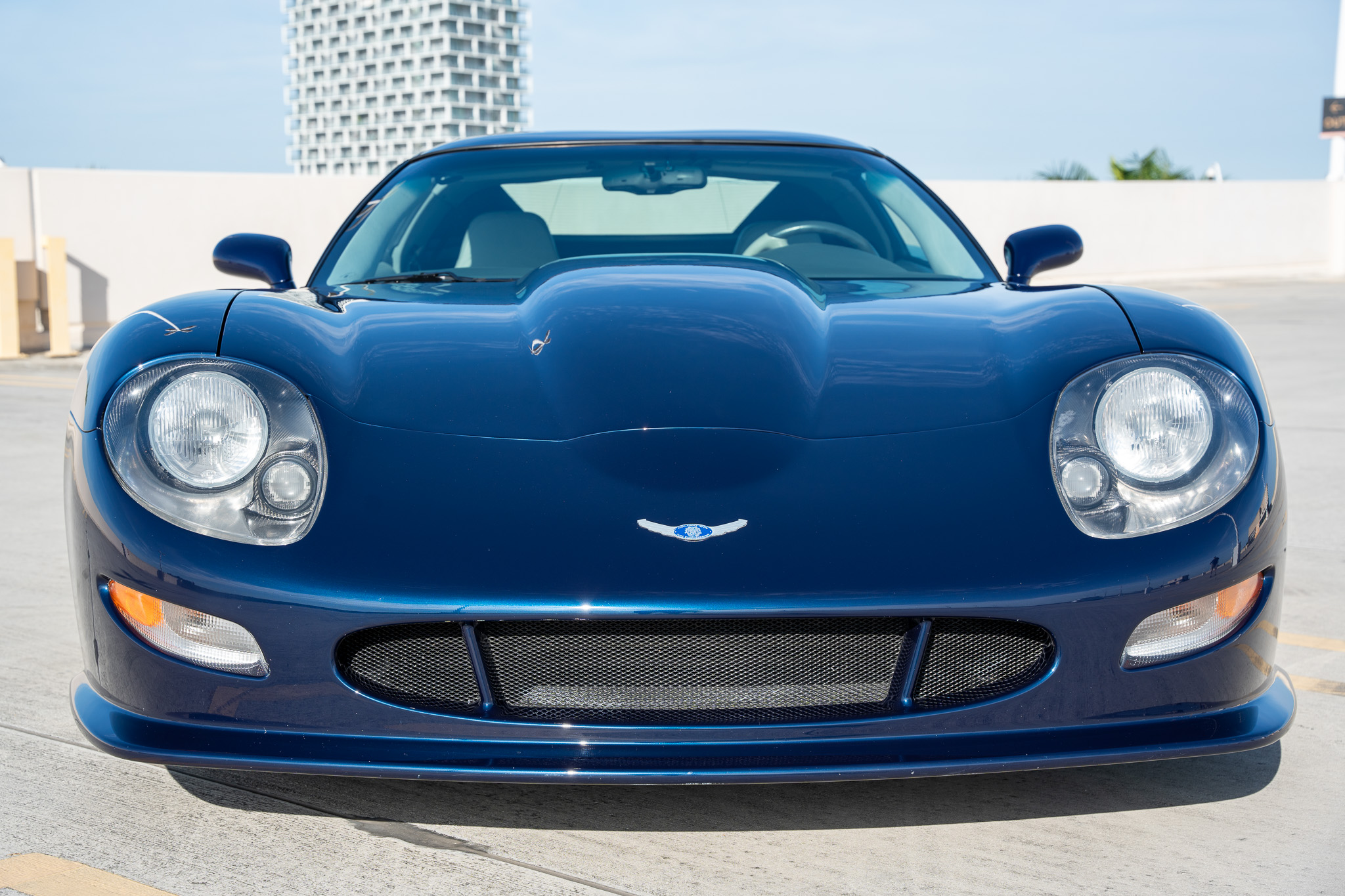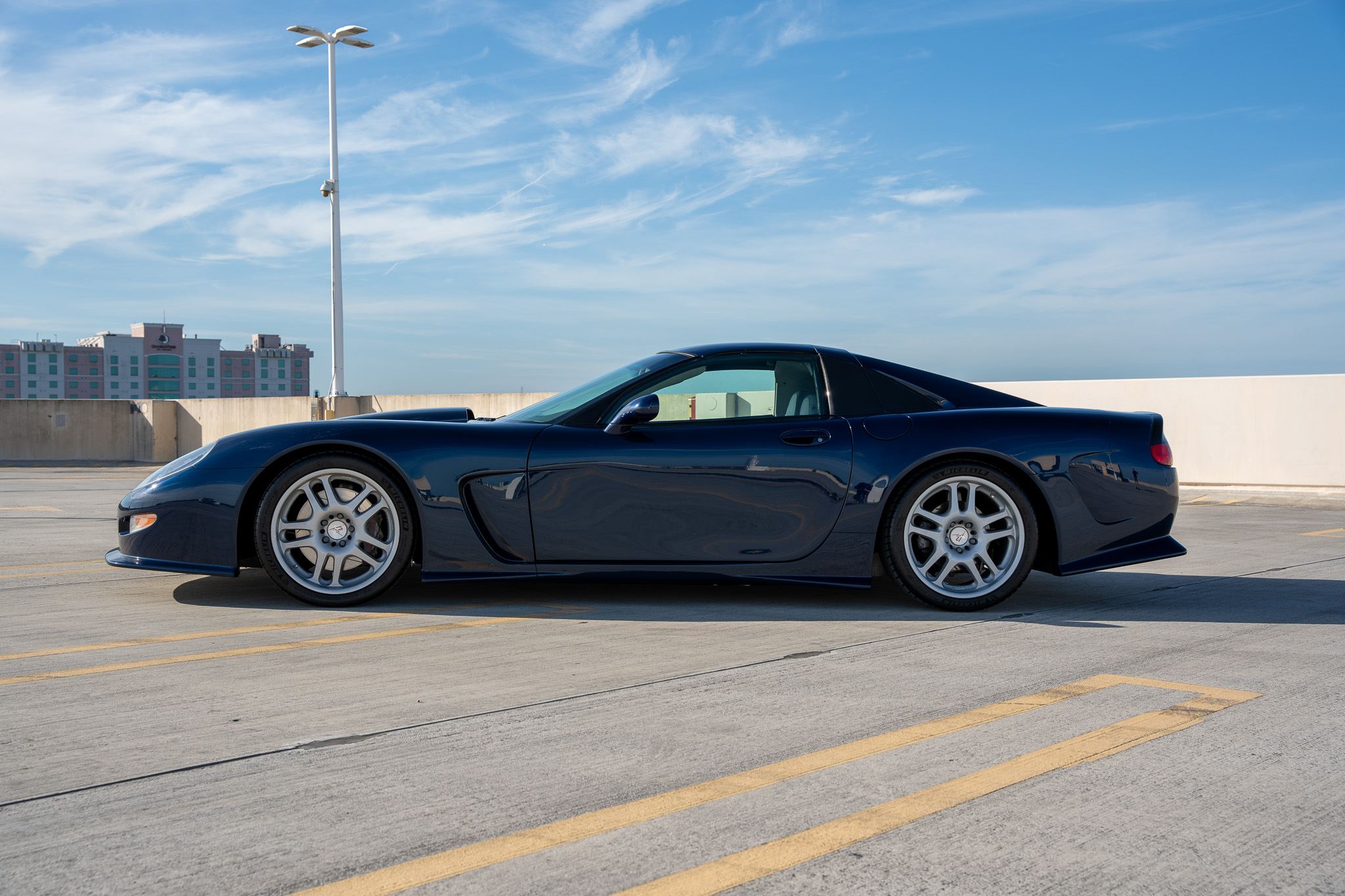 Silver-finished Azev 19” alloy wheels are mounted with 295/30 Michelin Pilot Sport 4S tires showing 2022 production date codes. The car is equipped with speed-sensitive power steering, and braking is handled by four-wheel discs with Callaway-branded Alcon calipers up front and slotted rotors all around. The dampers were rebuilt in September 2022.
