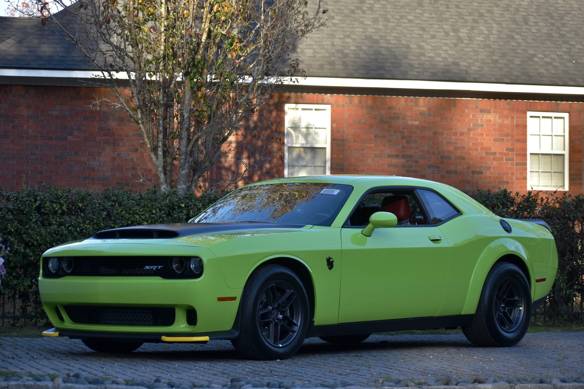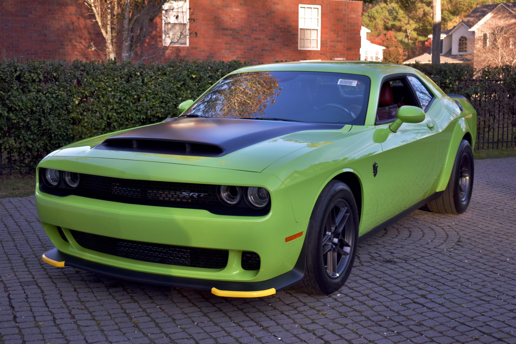 Factory 17″ and 18″ forged aluminum wheels are wrapped in 245/55 front and 315/50 rear Mickey Thompson ET Street R tires developed exclusively for the Demon 170. Stopping power is provided by black four-piston Brembo calipers with yellow SRT lettering over ventilated discs. The Demon 170 is equipped with a unique Drag Mode suspension with adaptive-damping shocks as well as launch control, a line lock, and a revised transbrake.