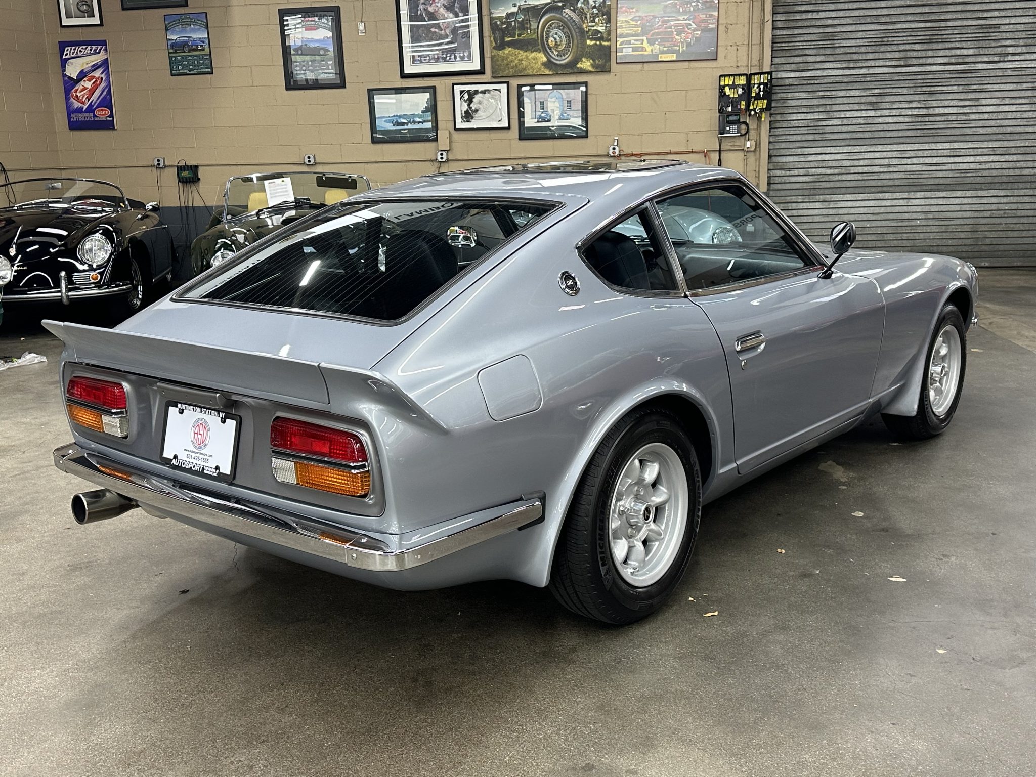 Silver-powder-coated 14″ Minilite wheels are mounted with 185/70 Michelin Defender tires. The car was factory equipped with an independent suspension, a front stabilizer bar, and rack-and-pinion steering. Braking system updates include a 280ZX Turbo-sourced master cylinder, stainless steel brake hoses, Toyota four-piston front calipers, and aluminum rear drums.