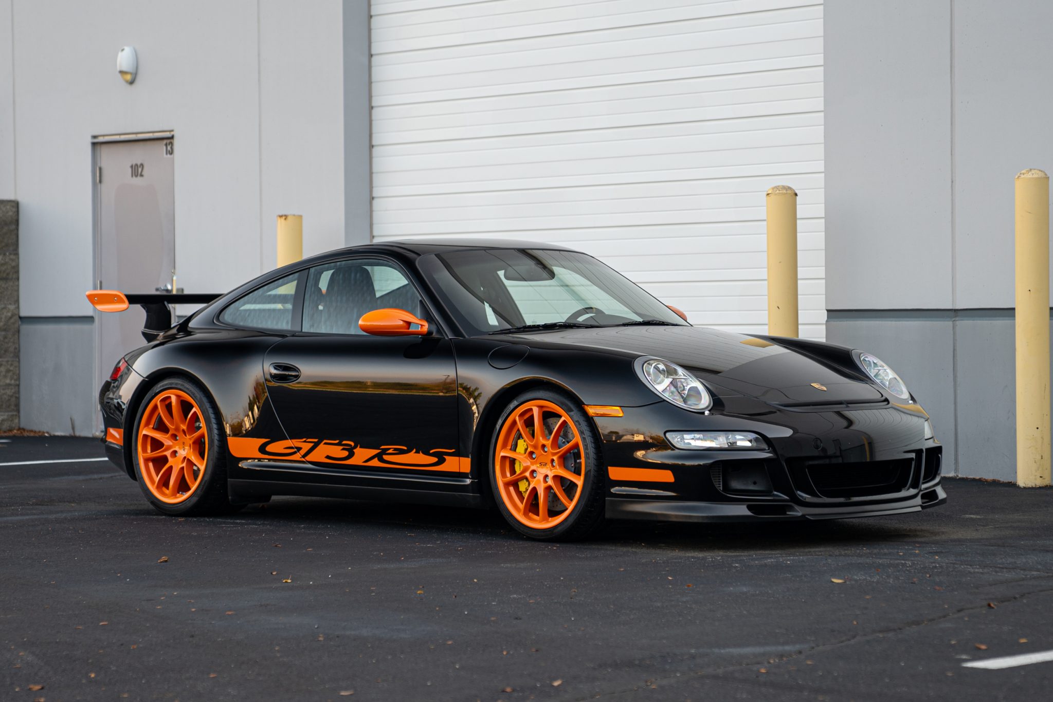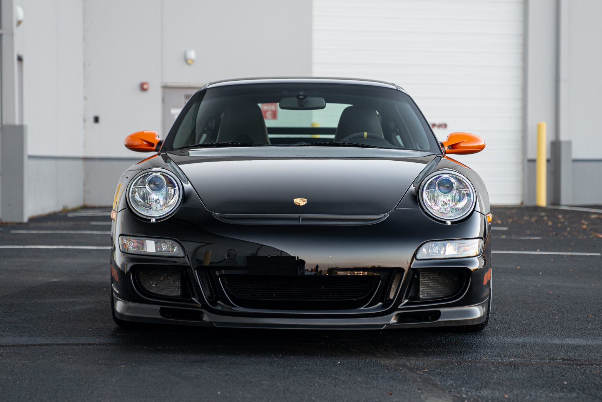 The 19″ orange-finished alloy wheels are mounted with 235/35 front and 305/30 rear Pirelli P Zero tires. Braking is handled by yellow-finished Porsche-branded calipers over ceramic-composite rotors. It was factory equipped with Porsche Active Suspension Management (PASM) featuring adjustable coilovers.